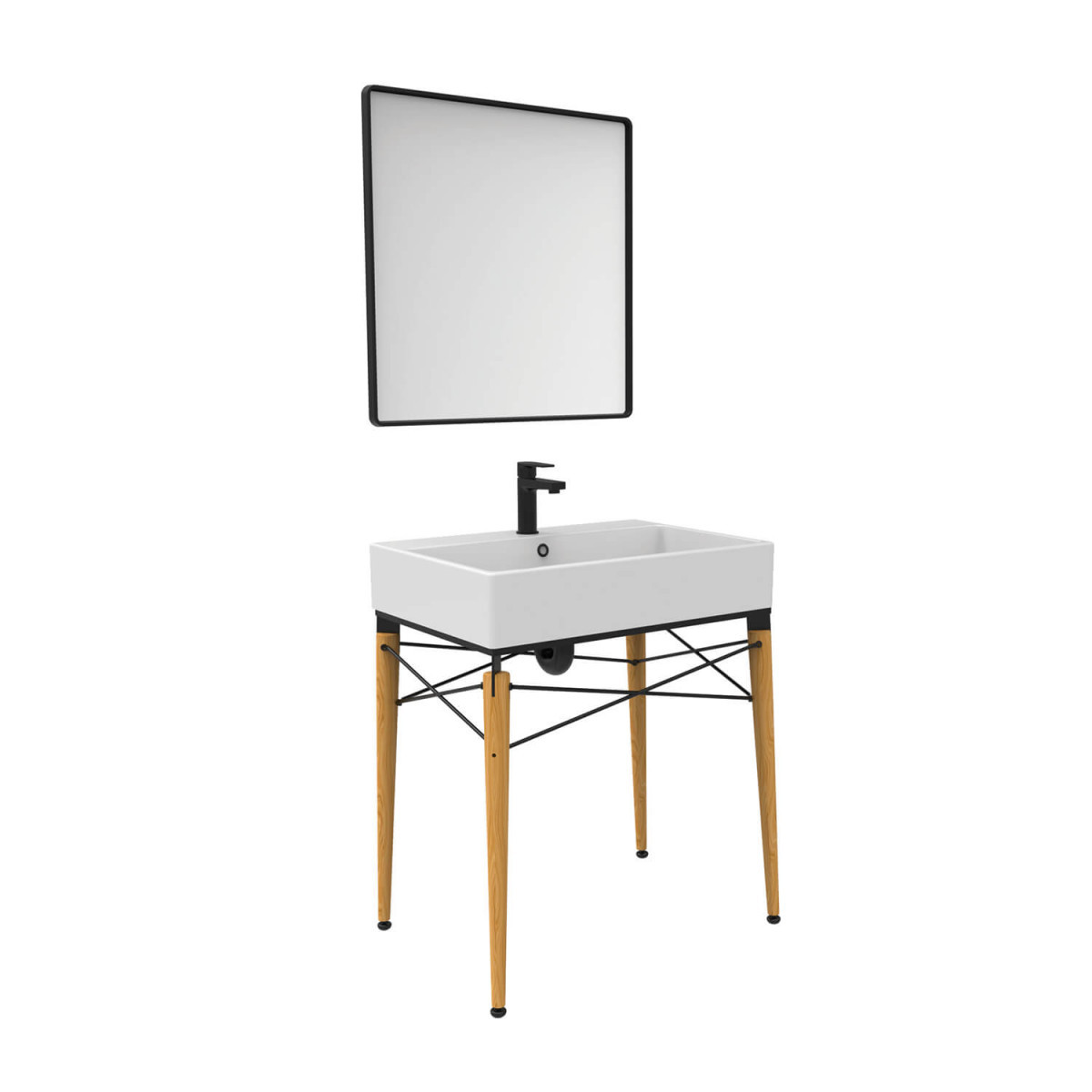Тумба с раковиной Creavit Legno LG0070.01.KN+NX270 75 см (бук/чёрный)
