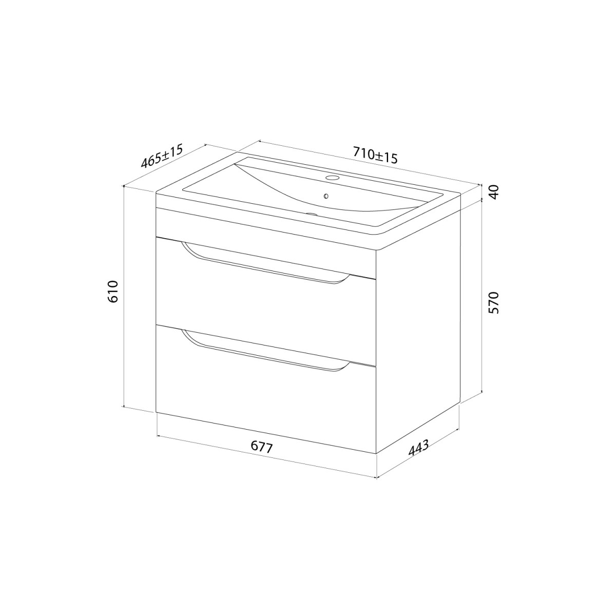 Длина изделия, мм: 465 Ширина изделия, мм: 710 Высота изделия, мм: 610 Донный клапан в комплекте: Нет Основной материал: МДФ Покрытие: Эмаль Материал боковин: ЛДСП Размер изделия, мм.: 710 х 465 х 610 Цвет изделия: Белый Материал полок: ЛДСП Материал ручки: Встроенная ручка Материал умывальника: Санфарфор Материал фасада: МДФ Страна бренда: Россия Тип умывальника: Встраиваемый Монтаж корпуса: Подвесной Наличие перелива в умывальнике: Есть Поверхность: Глянцевая Покрытие боковин: Ламинация Покрытие фасада: Эмаль Система хранения: Выдвижные ящики Сифон в комплекте: Нет Тип монтажа: Подвесной Характеристики фурнитуры: Доводчик