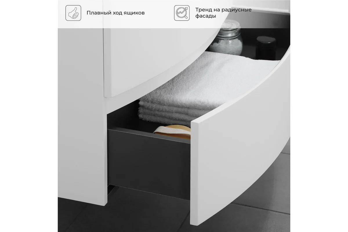 Тумба с раковиной Итана Arko 70 не только станет стильным акцентом для вашей ванной комнаты, но и обеспечит максимальную функциональность и удобство в использовании. Эстетически привлекательный дизайн с радиусными фасадами подчеркивает современный стиль интерьера, а белый матовый оттенок придаёт свежесть и легкость любому пространству. Эта подвесная тумба для ванной имеет размеры 702х486х593 мм, что позволяет идеально вписаться как в малогабаритные помещения, так и в просторные ванные комнаты. Благодаря подвесной конструкции, такая мебель значительно упрощает уборку, обеспечивая легкий доступ к полу. Великолепное сочетание формы и функциональности делает эту тумбу с раковиной отличным выбором как для семей, так и для индивидуального использования. Удобство использования обеспечивает хорошо продуманная раковина, которая гармонично сочетается с тумбой и создаёт единый ансамбль. Мебель изготовлена из высококачественных материалов, что гарантирует долгий срок службы и сохранность внешнего вида на протяжении многих лет. Ценителям эстетики и практичности понравится емкость и анатомически правильная конструкция ящиков, которые позволяют удобно сортировать и хранить всевозможные принадлежности для ванной комнаты. Устанавливая подвесную тумбу для ванной, можно добиться эргономичного и оптимального использования пространства, избегая загромождения. Подвесная тумба для ванной комнаты Итана идеально подходит для тех, кто ценит высокое качество и стремится к функциональной организации своей ванной. Эта раковина с тумбой станет важным элементом вашего интерьера, благодаря своей элегантности и удобству. Продуманное до мелочей исполнение фасадов, мягкость линий и современный дизайн делают её отличным дополнением к любой ванной комнате. Выбирая тумбу под раковину Итана , вы получаете не только функциональный предмет мебели, но и стильный аксессуар, который придаст вашему дому новые краски и уют.