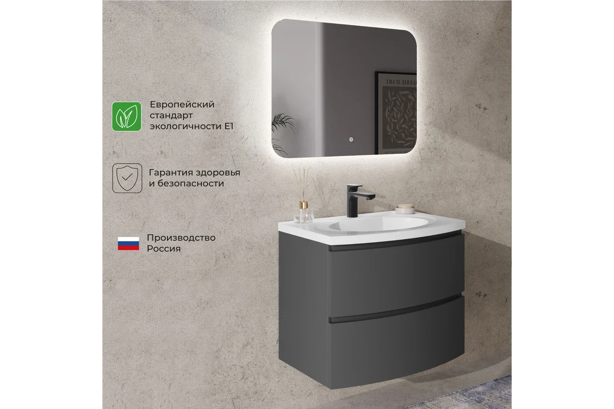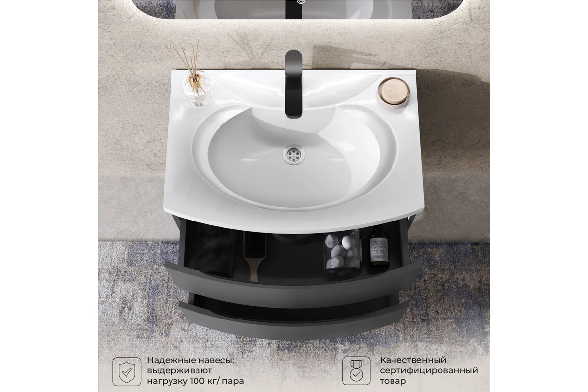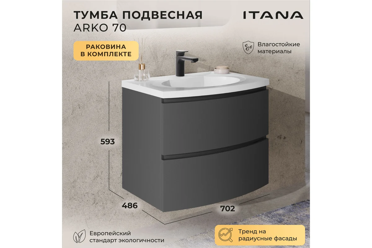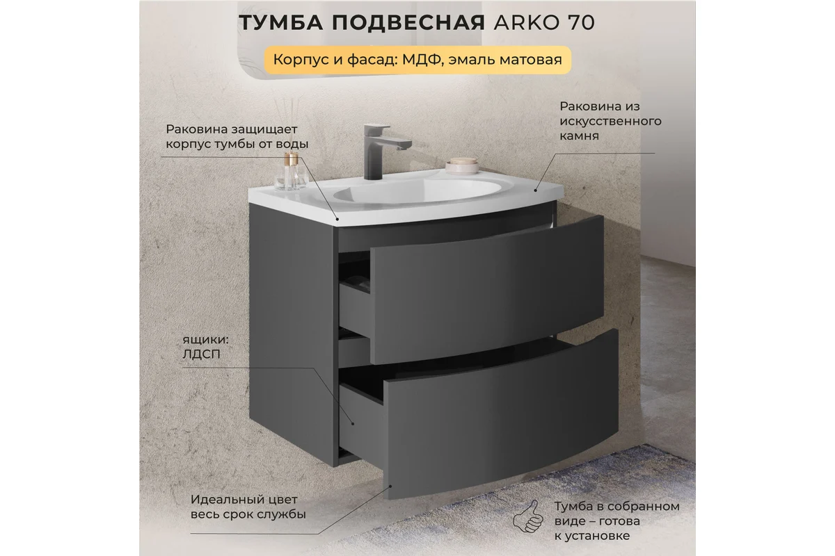 Тумба с раковиной Итана Arko 4657836462791 70 см (эмаль графит матовый) подвесная