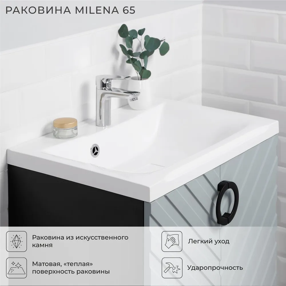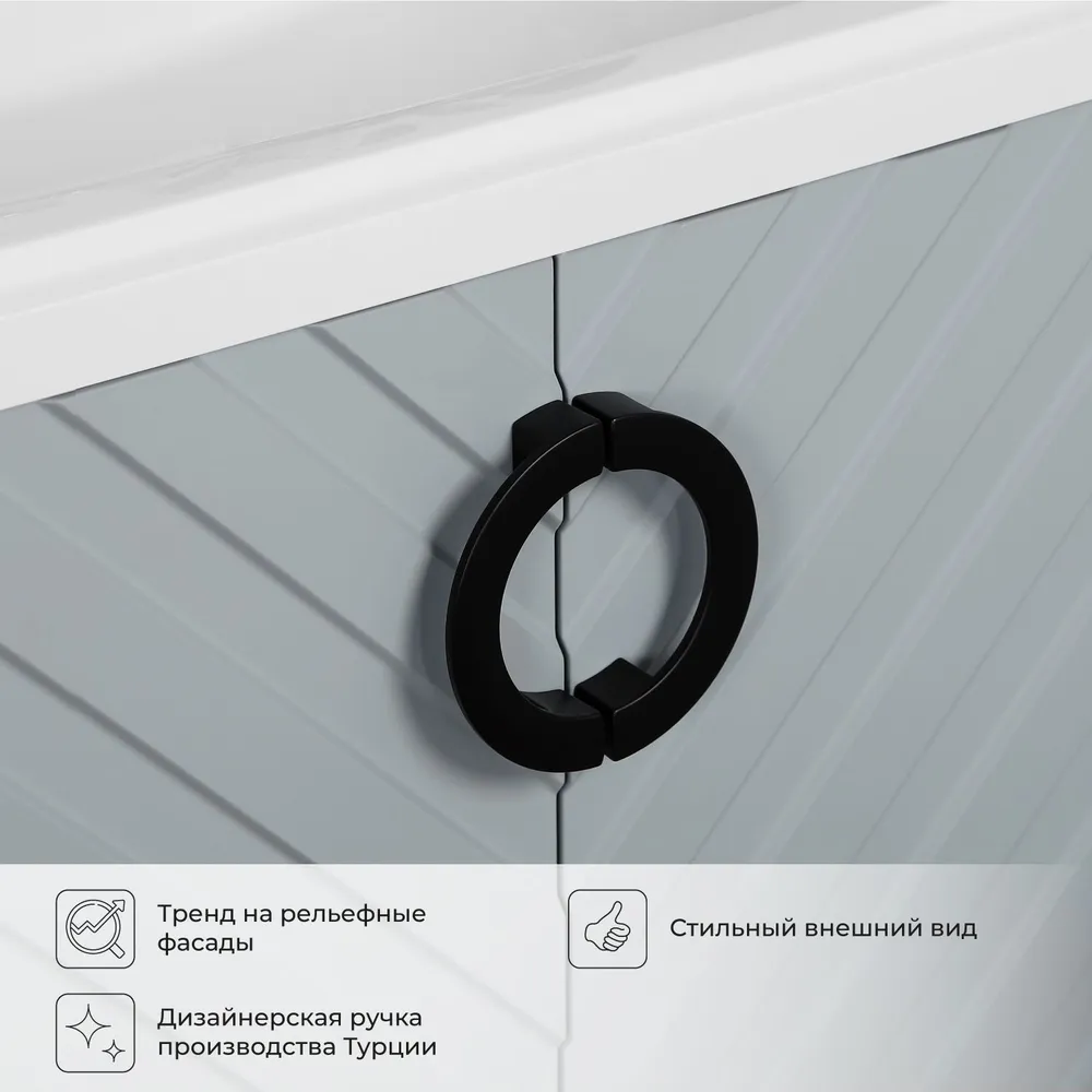 Коллекция Palladio - великолепное звучание современной классики. Изящные пропорции и нестандартный подход к дизайну с сохранением функциональности. Тумба с раковиной выполнена из ЛДСП в модных декорах. Технология производства позволила сделать элементы мебели устойчивыми к влаге. Качественная фурнитура с доводчиками обеспечивает легкое открывание и плавное закрывание дверей. Дизайнерские металлические ручки с покрытием - не только декоративный элемент, но и удобное решение - фасады остаются чистыми при постоянном открывании и закрывании. Вырез под сифон универсальный, для любого типа. Благодаря своей конструкции тумба обеспечивает удобный доступ к раковине и позволяет скрыть коммуникации. Тумба с раковиной в ванную оснащена удобным шкафчиком для хранения, что позволяет разместить всё необходимое под рукой. Для точного выбора тумбочки с раковиной в ванную комнату рекомендуем обратиться к схеме замеров, которая находится на фото в карточке товара, размеры изделия могут отличаться +/-1 см в связи со спецификой производства.
