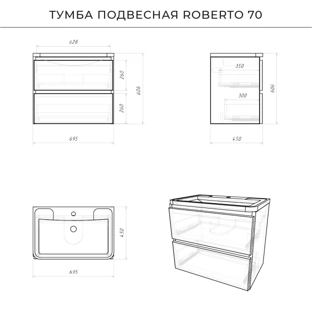 Тумба с раковиной Итана Roberto 4657773608207 70 см (белый) подвесная