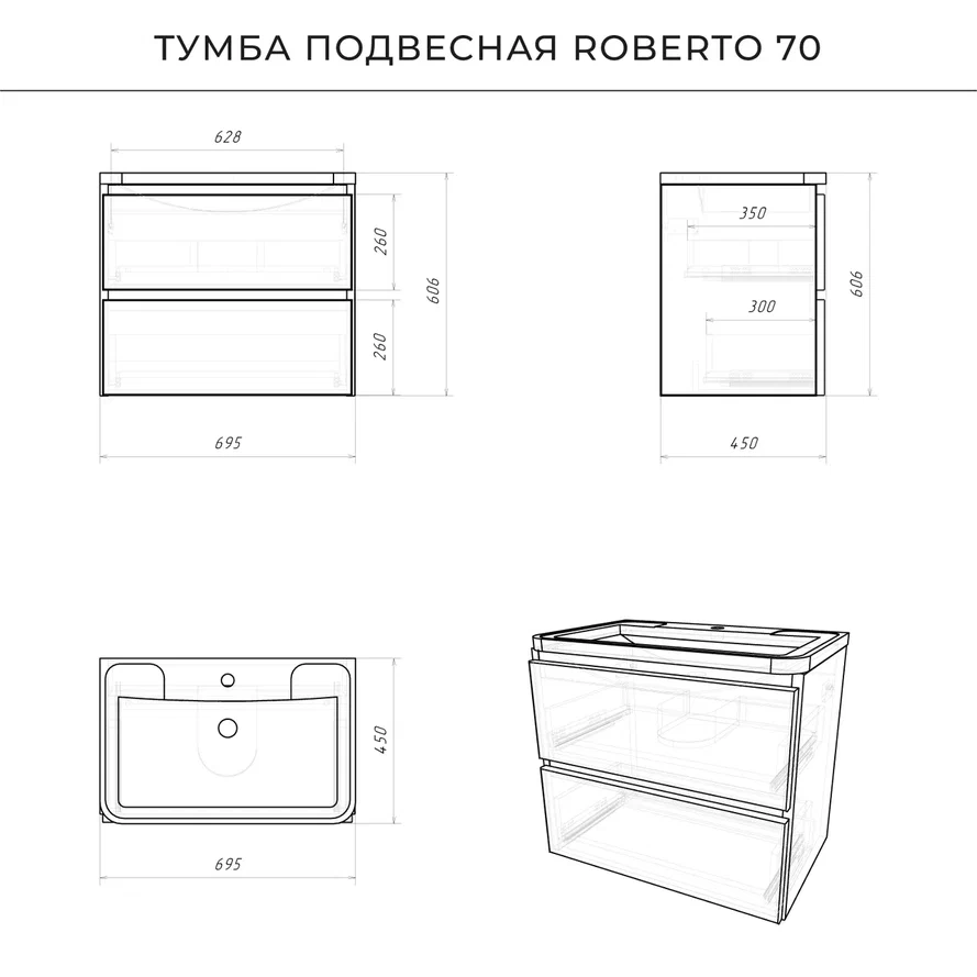 Умывальник полностью закрывает корпус тумбы для ванной комнаты, что обеспечивает дополнительную защиту от воды.