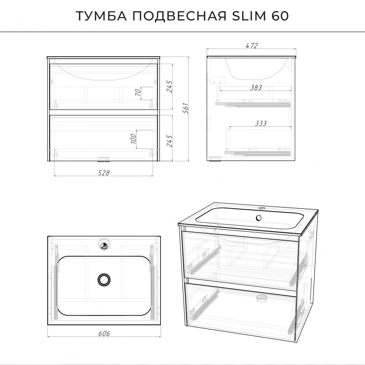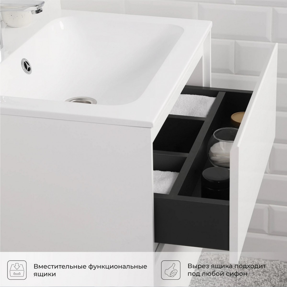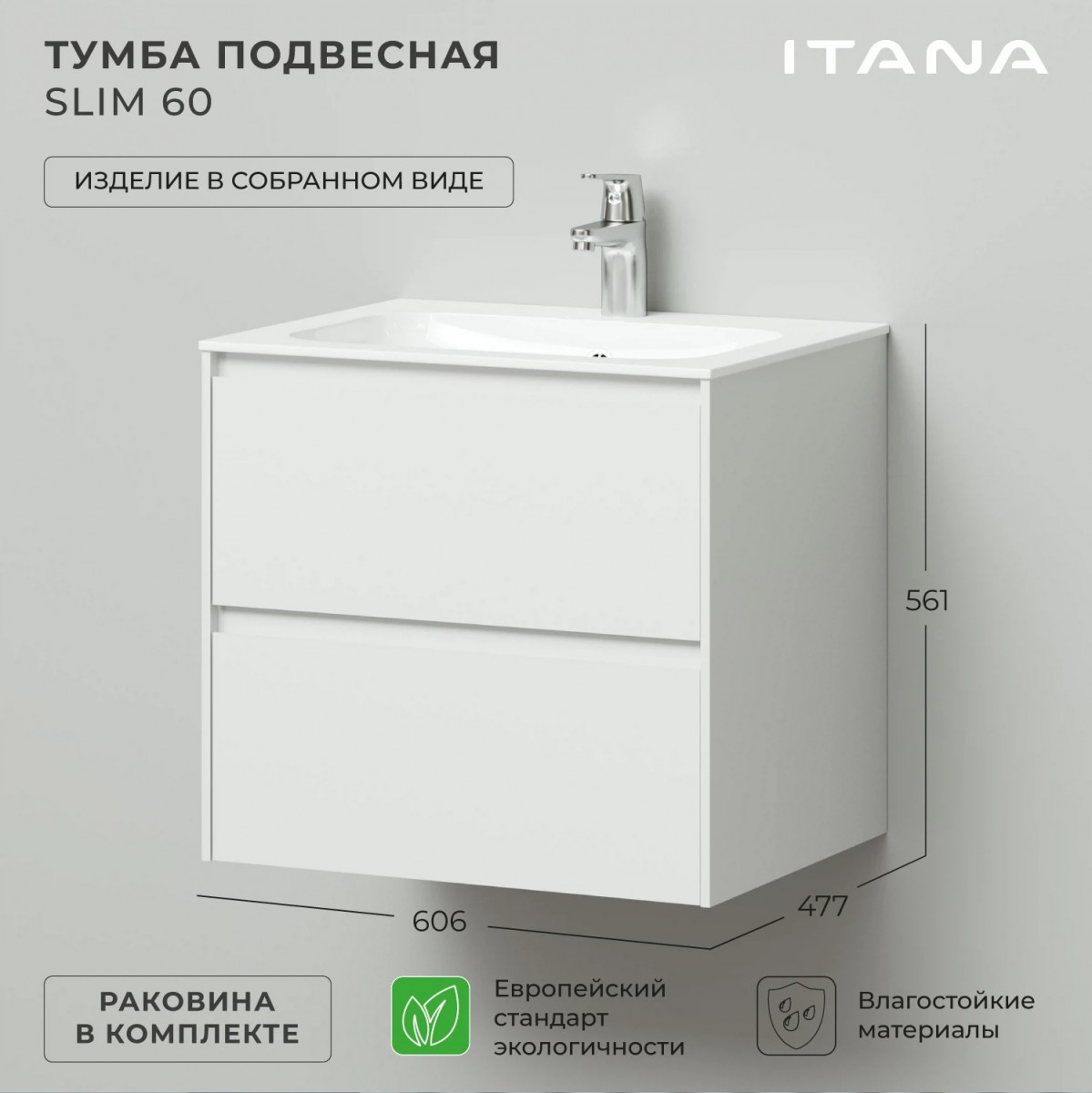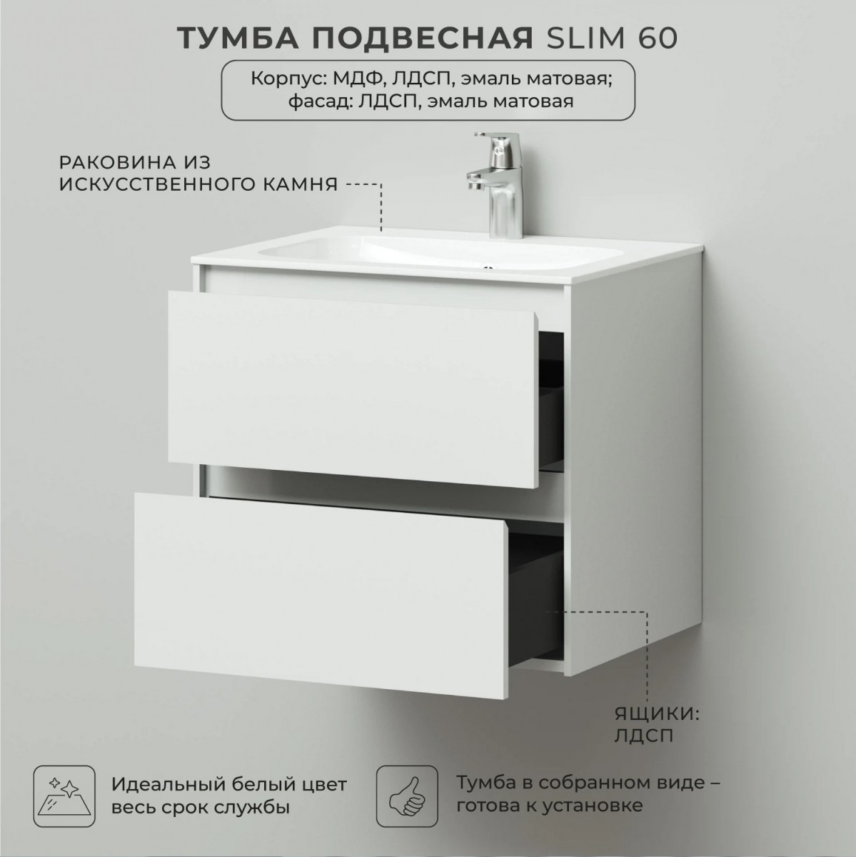 Тумба с раковиной Итана Slim 4657810333833 60 см (белый матовый) подвесная