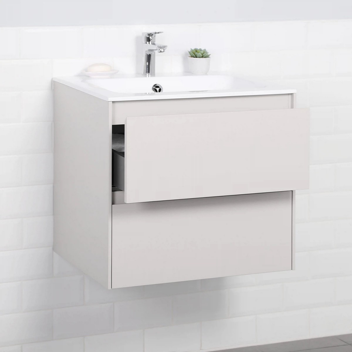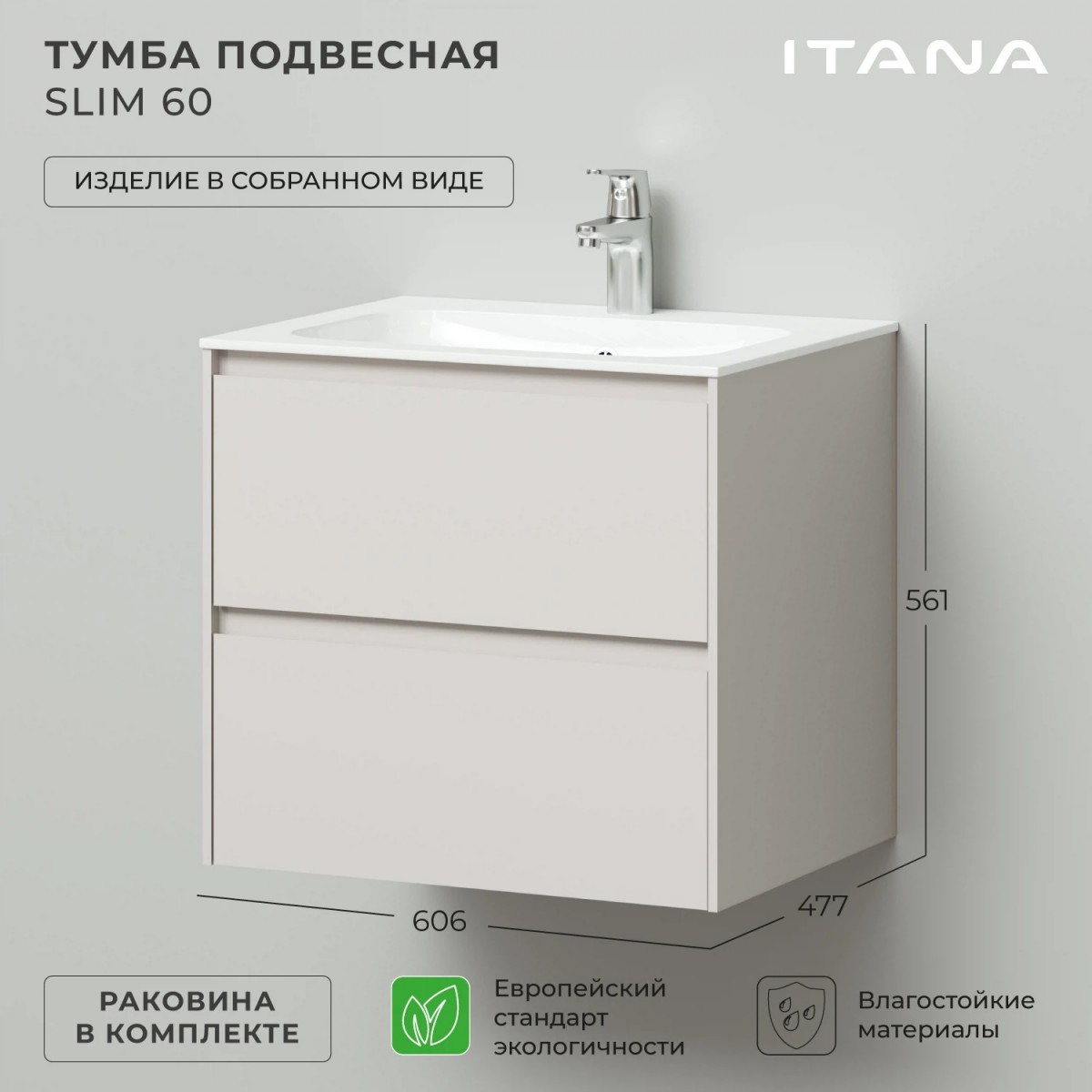 Тумба с раковиной Итана Slim 4657810334373 60 см (бежевый матовый) подвесная