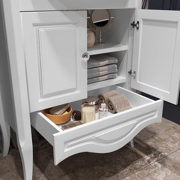- Две распашные дверцы и один выдвижной ящик с механизмом для плавного и бесшумного закрывания.