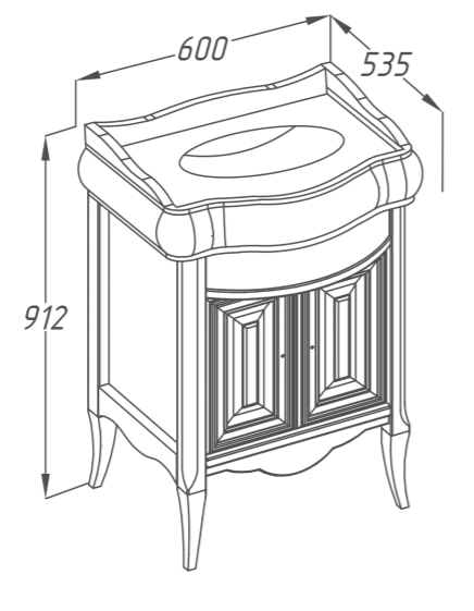 Выполнена в классическом стиле с плавными изогнутыми формами и изящными слегка гнутыми ножками. Фасадные элементы украшены резными узорами.
