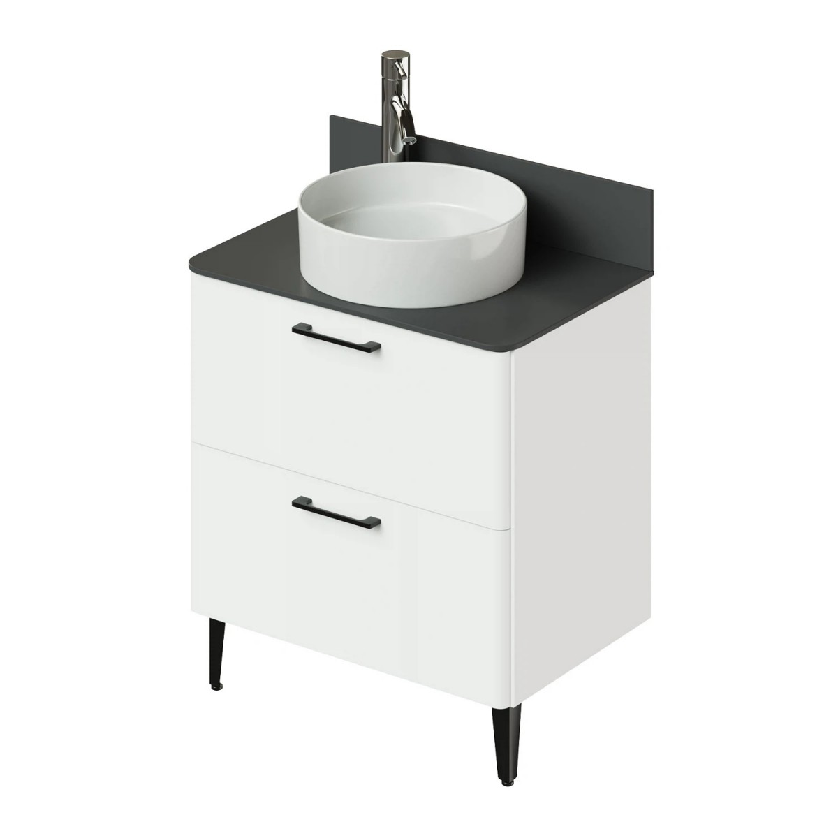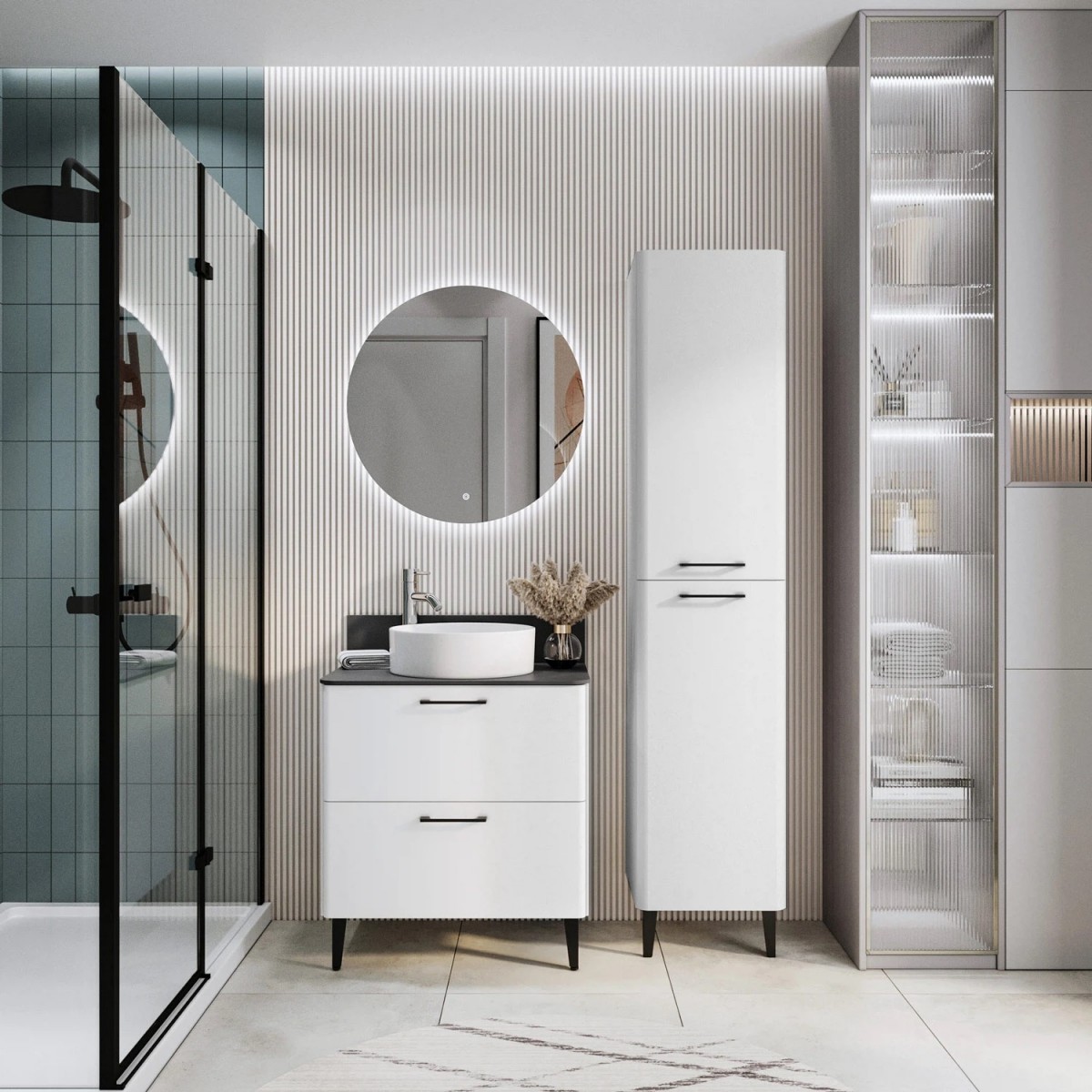 Напольная тумба со столешницей из коллекции Nais 2.0 на высоких черных ножках станет настоящим украшением ванной комнаты в современном, скандинавском стиле. Изделие изготовлено из прочного МДФ, поэтому выдерживает высокие эксплуатационные нагрузки. Корпус и фасады покрыты матовой пленкой, что обеспечивает дополнительную защиту мебели от влаги и перепадов температуры. Качественная фурнитура с доводчиками обеспечивает легкое открывание и плавное закрывание ящиков. Дополнительную функциональность, декоративность и красоту тумбе придает столешница из прочного керамогранита. Вырез под сифон универсальный, для любого типа. Черная матовая ручка уникального дизайна придает изделию богатый, статусный вид.