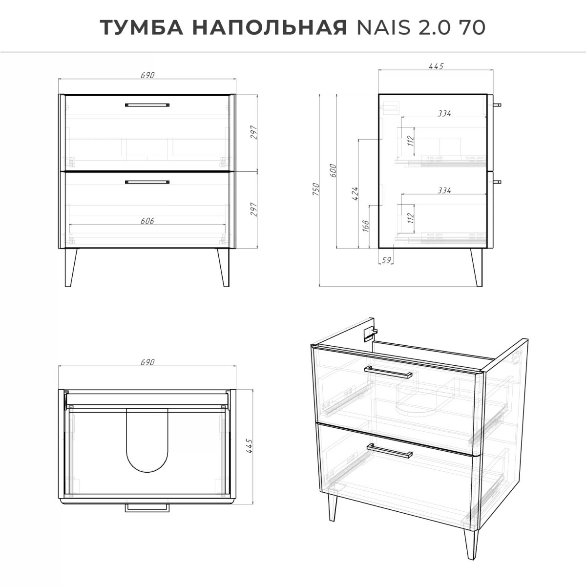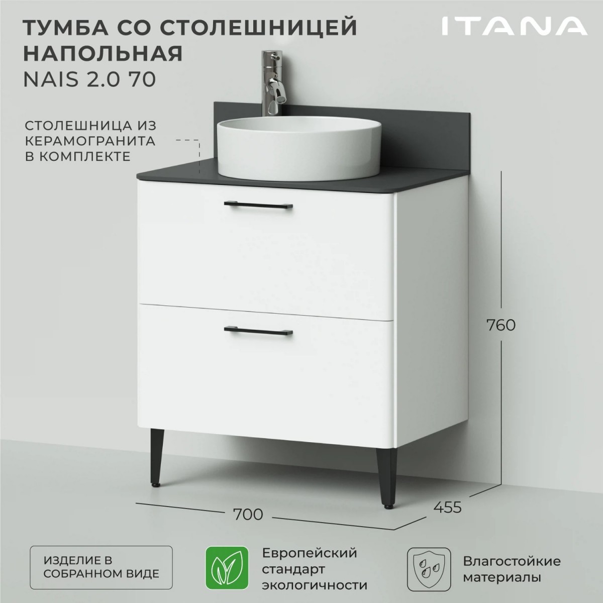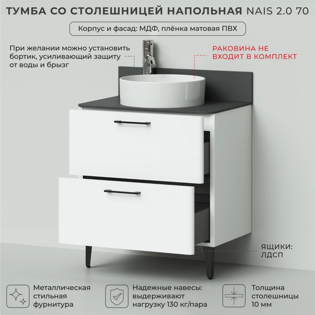 Тумба со столешницей Итана Nais 2.0 4657810334984 70 см (белый матовый) напольная