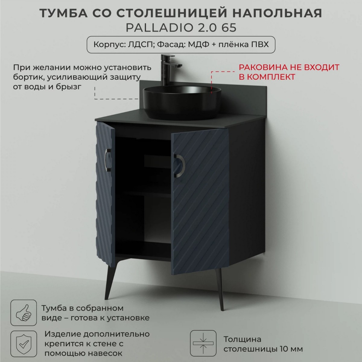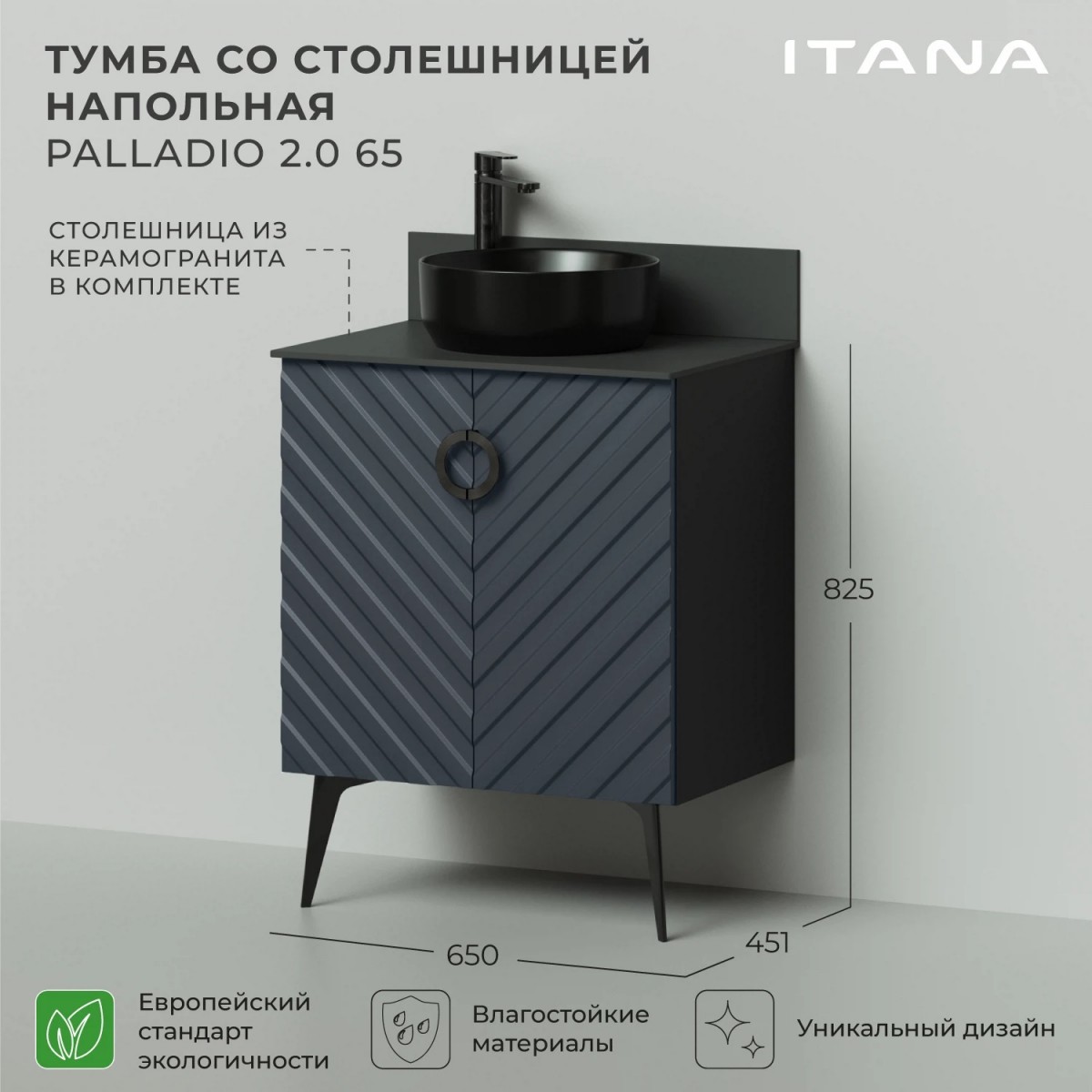 Тумба со столешницей Итана Palladio 2.0 4657821041055 65 см (маренго софт) напольная