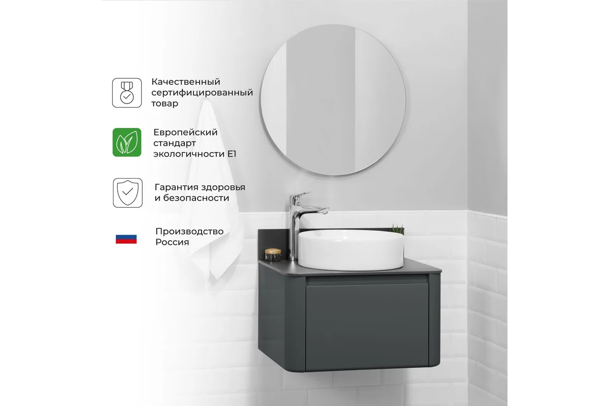 Тумба со столешницей Итана Pronto 60 - это идеальное решение для вашей ванной комнаты, объединившее в себе стиль и функциональность.
