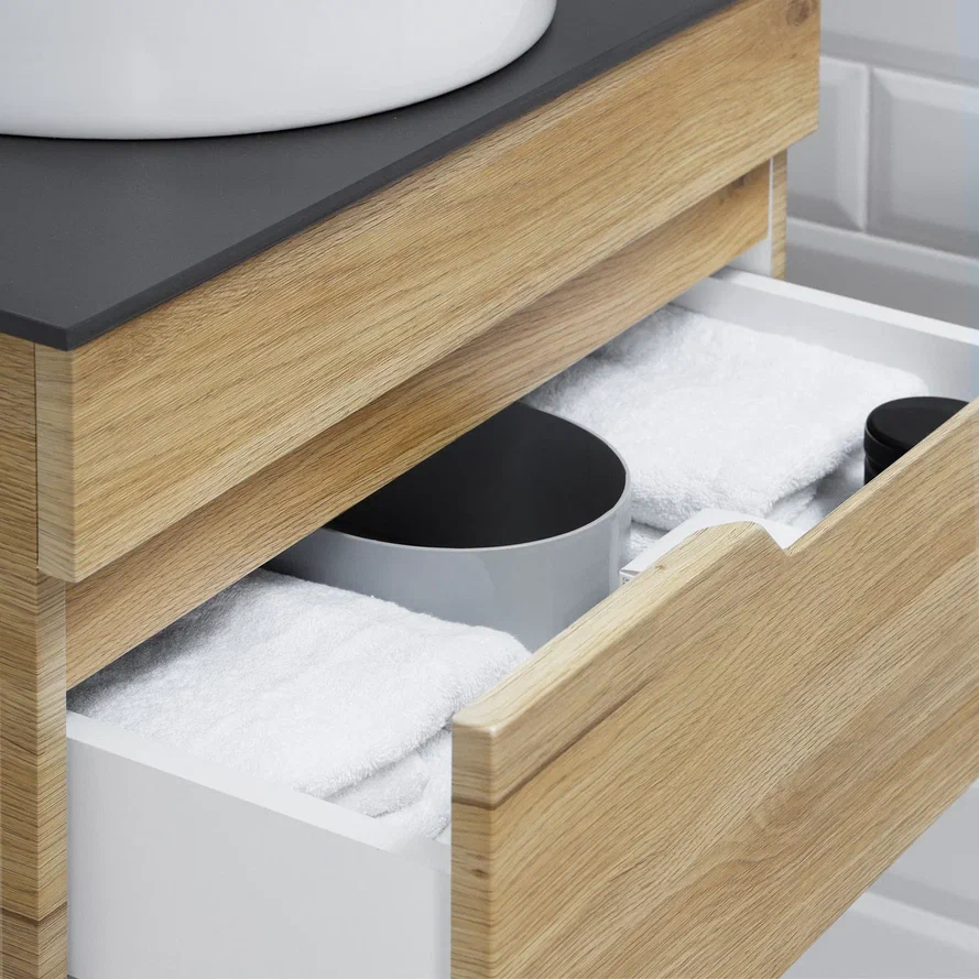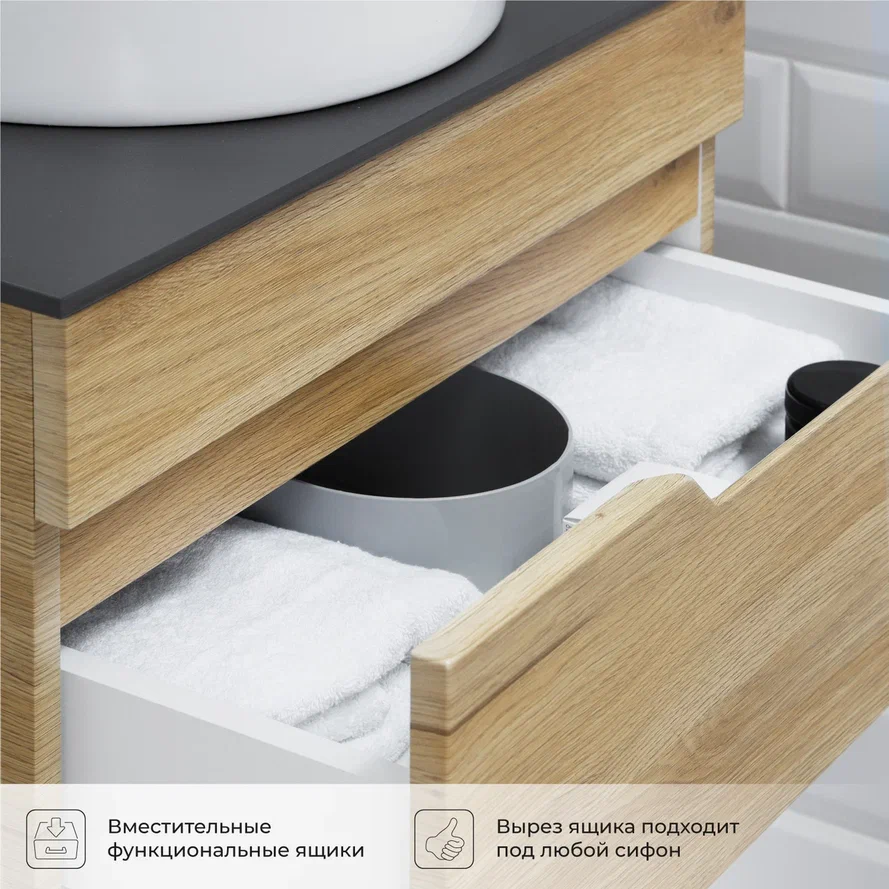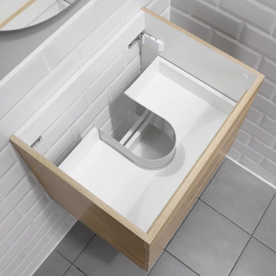 Подвесной дизайн облегчает уборку пола под тумбой, позволяя вам поддерживать чистоту и порядок с минимальными усилиями.