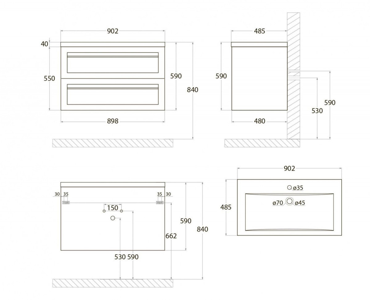 Тумба под раковину Art&Max PLATINO AM-Platino-900-2C-SO-GM 90 см (серый матовый)