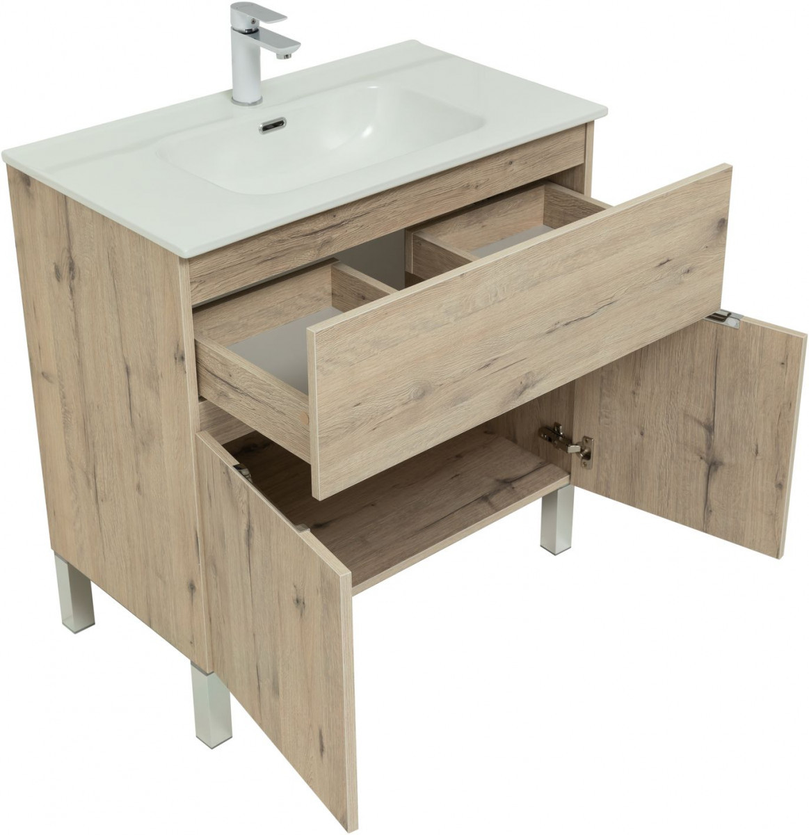 Тумба под раковину Aquanet Алвита New 277553 80 см (дуб веллингтон белый) 1 ящик 2 дверцы, напольная
