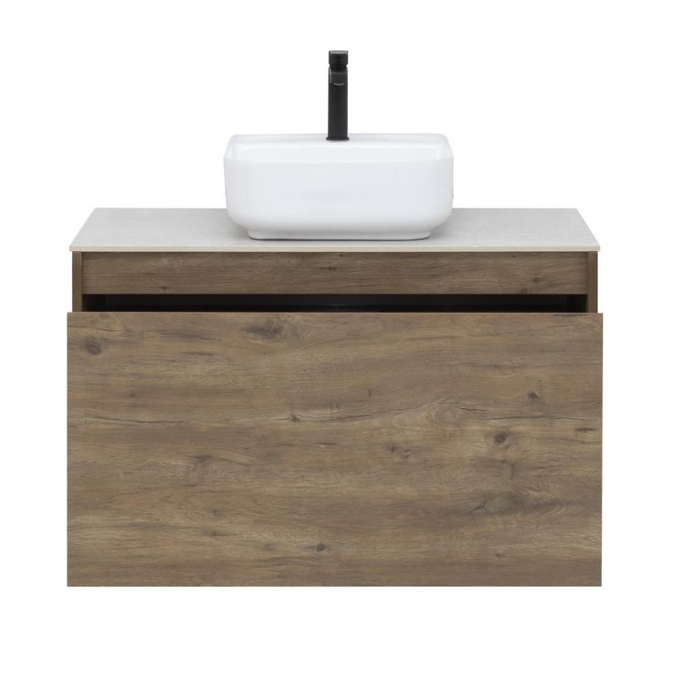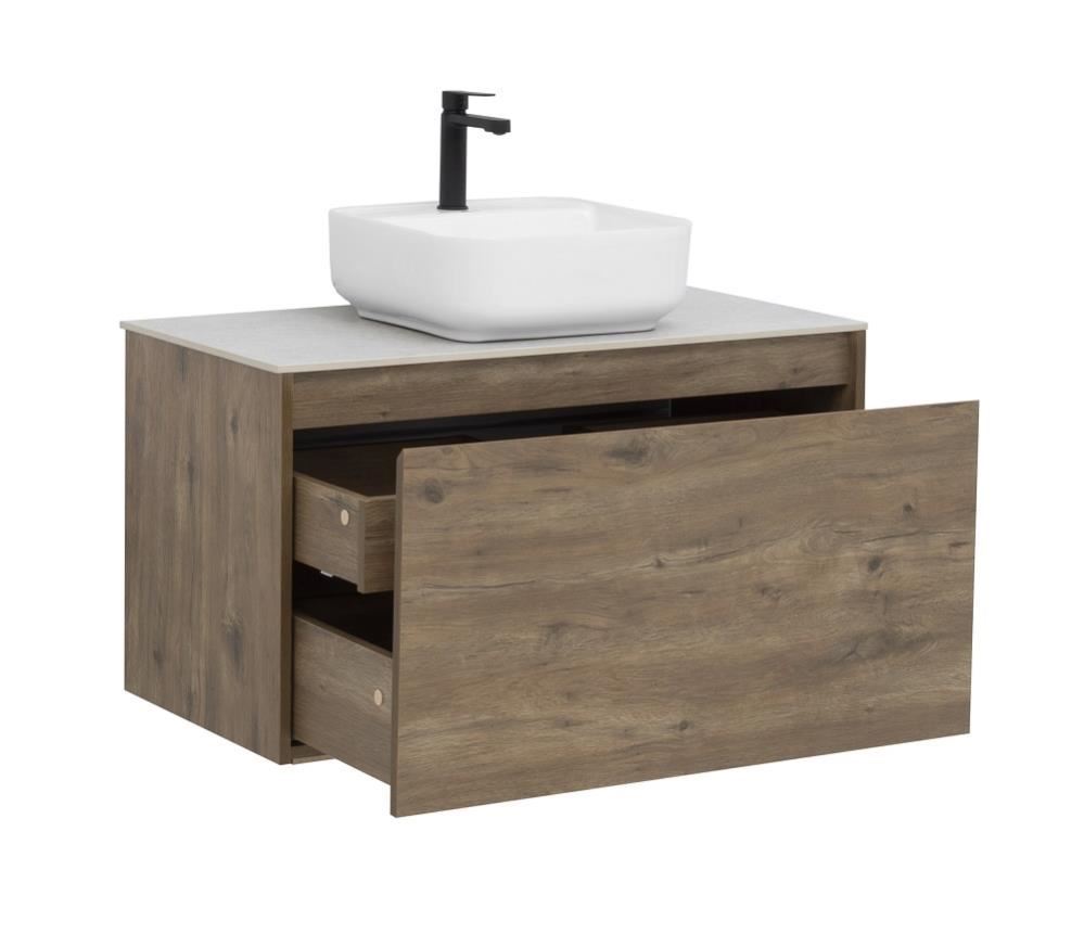 Тумба под раковину Aquanet Nova Lite 90 из влагостойкой ламинированной древесно-стружечной плиты в изысканном цвете «дуб рустикальный» имеет достойный вид. Фактура натурального дерева выглядит благородно, а подвесной монтаж придает визуальную легкость тумбе шириной 90 см. Она оборудована одним ящиком, при открывании которого обнаруживается еще один небольшой для мелочей. Фасад выполнен с декоративной интегрированной ручкой, не имеющей острых краев и внутренних углов, что обеспечивает удобство в эксплуатации и легкий уход за мебелью. Ящики комплектуются направляющими немецкого производства Hettich Quadro, оснащенными доводчиками.