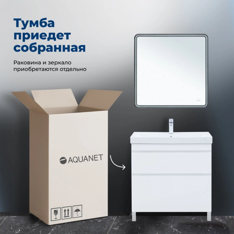 Тумба под раковину Aquanet Слим 346044 80 см (белый сатин) напольная