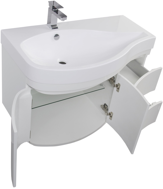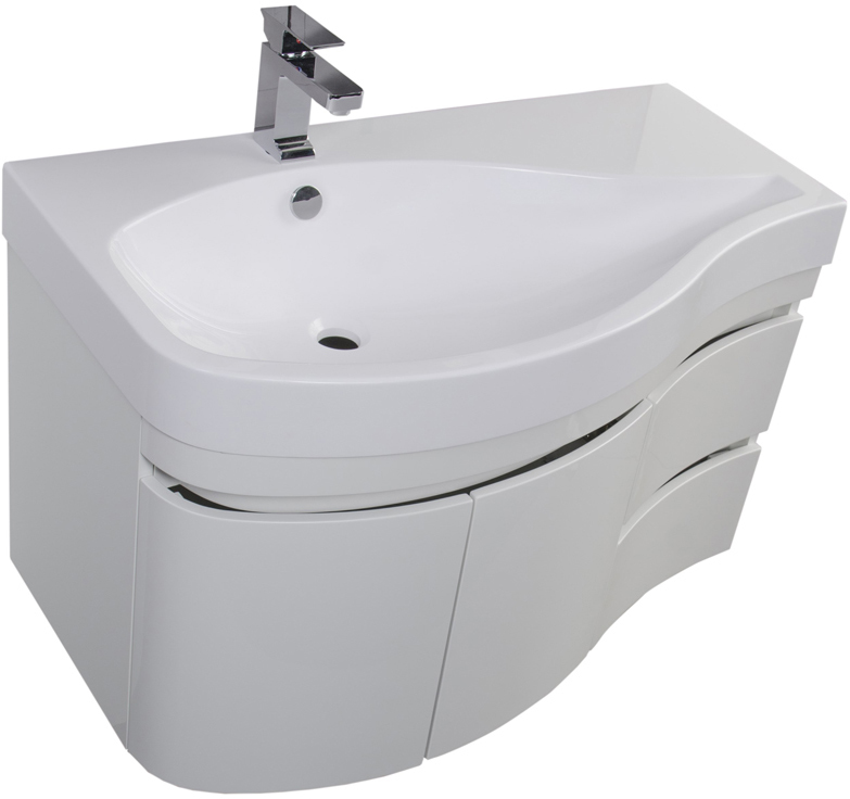 Тумба под раковину Aquanet Сопрано 95 L (белый) 2 дверцы, 2 ящика подвесная