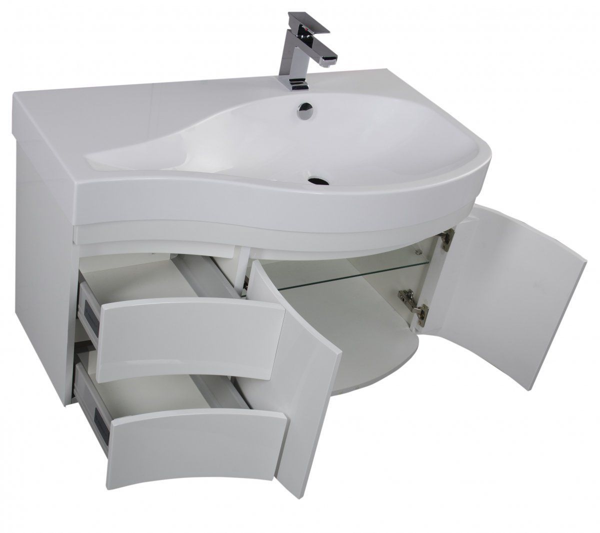 Тумба под раковину Aquanet Сопрано 95 R (белый) 2 дверцы, 2 ящика подвесная