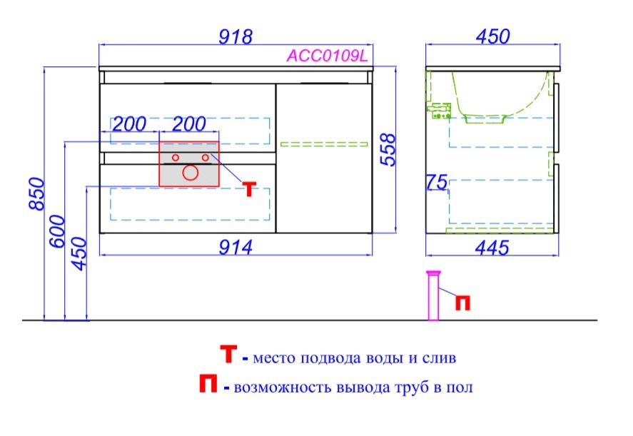 Тумба под раковину Aqwella Accent ACC0109LW 90 см L (белый) подвесная