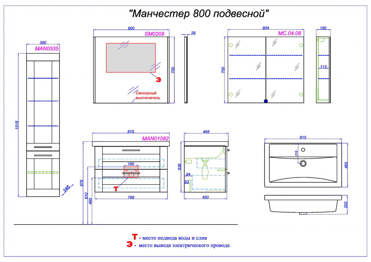 Тумба под раковину Aqwella Манчестер MAN01082 80 см (белый) подвесная