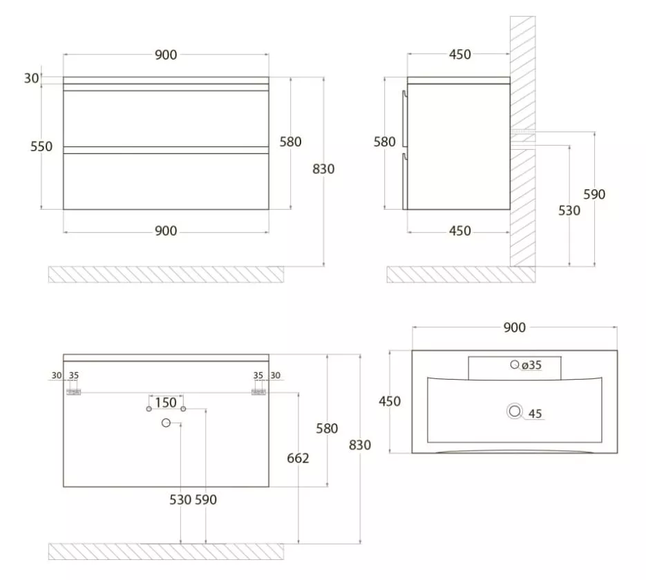 - Ширина: 900 мм