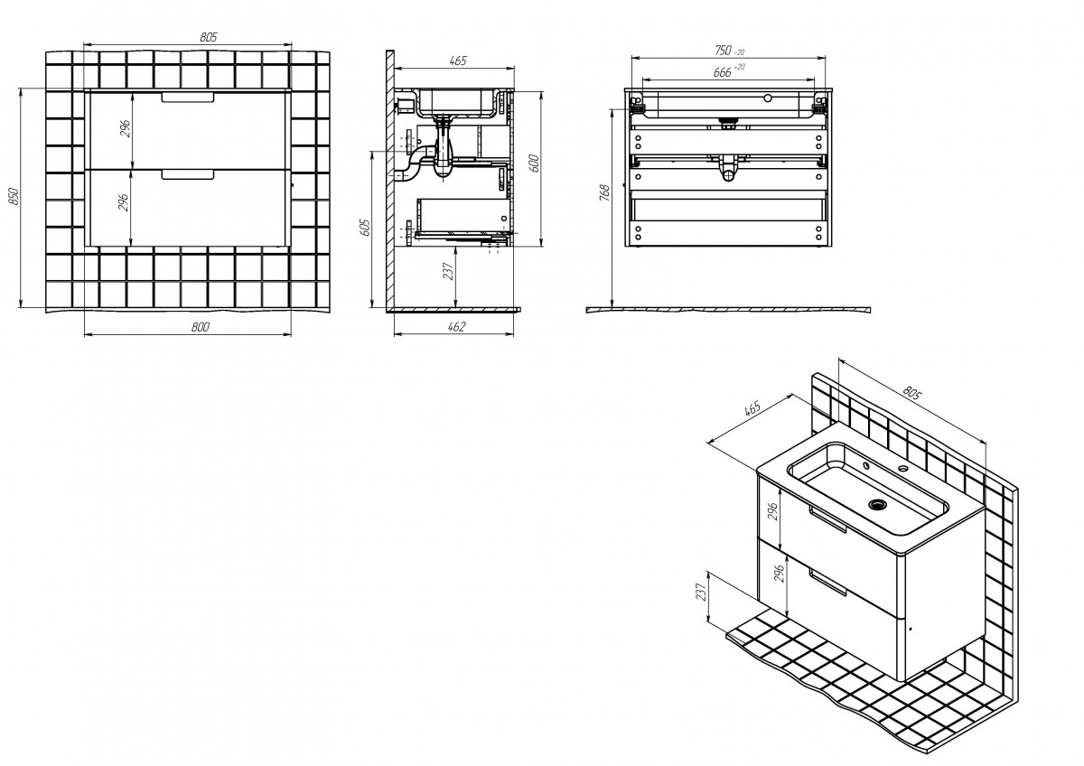 Тумба под раковину Briz Prato 240 03-18080-16 00 ГР 80 см (серый матовый) подвесная
