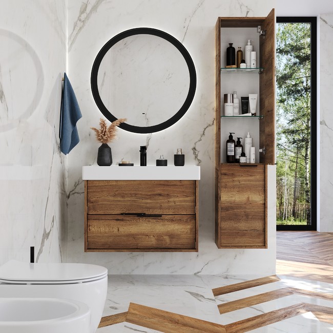 Тумба под раковину Briz Teso 243 03-18080-17 00 ВЕЛ 80 см (дуб Веллингтон) подвесная