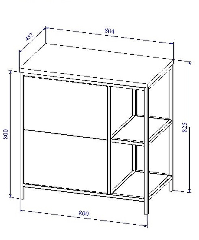 - Габариты корпуса тумбы (ШхВхД): 80,4x82,5x45,2 см.