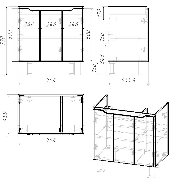 | Название: | Тумба Q PLUS (D), 80 см, подвесная/напольная, 3 дверцы, с опорами, белый глянец | ||