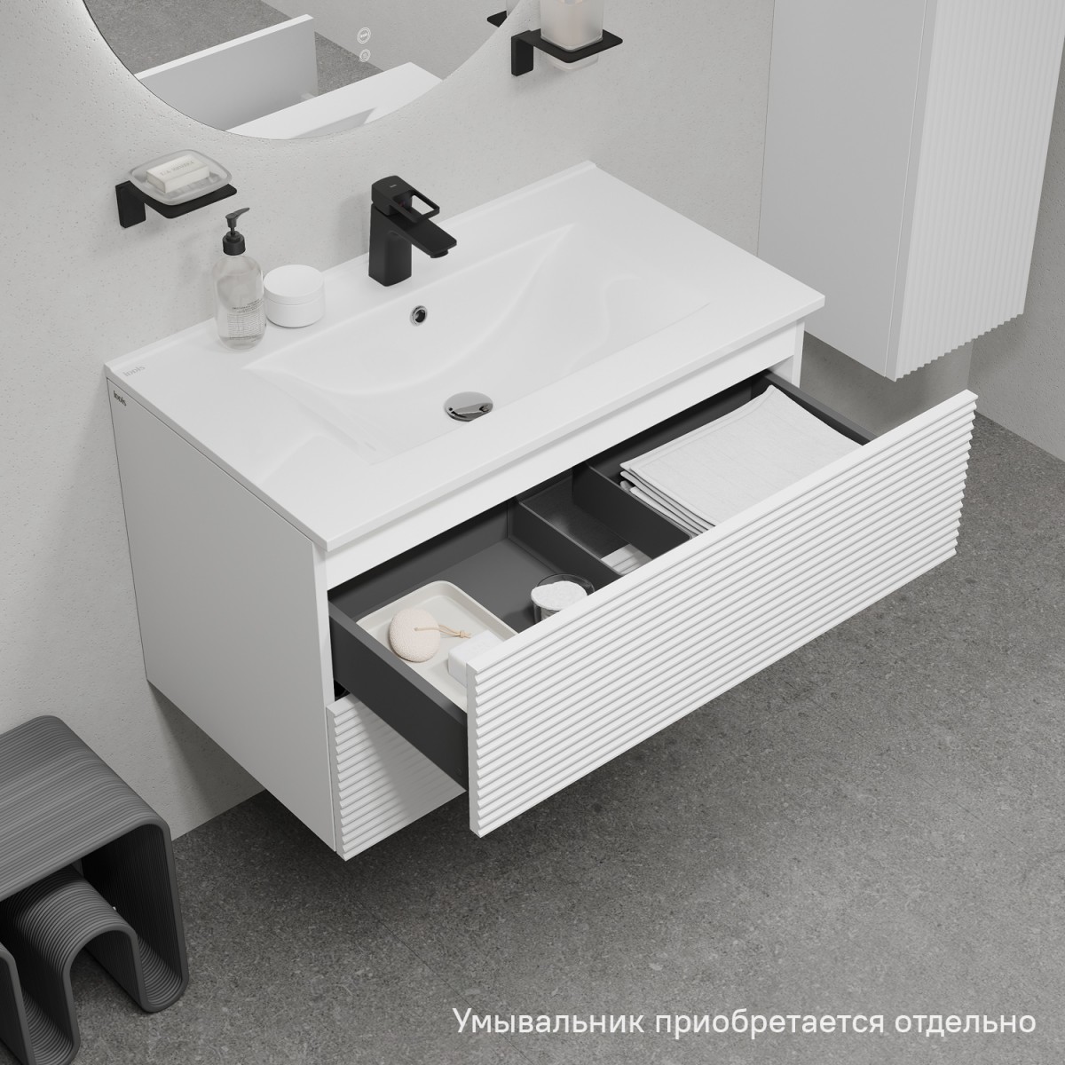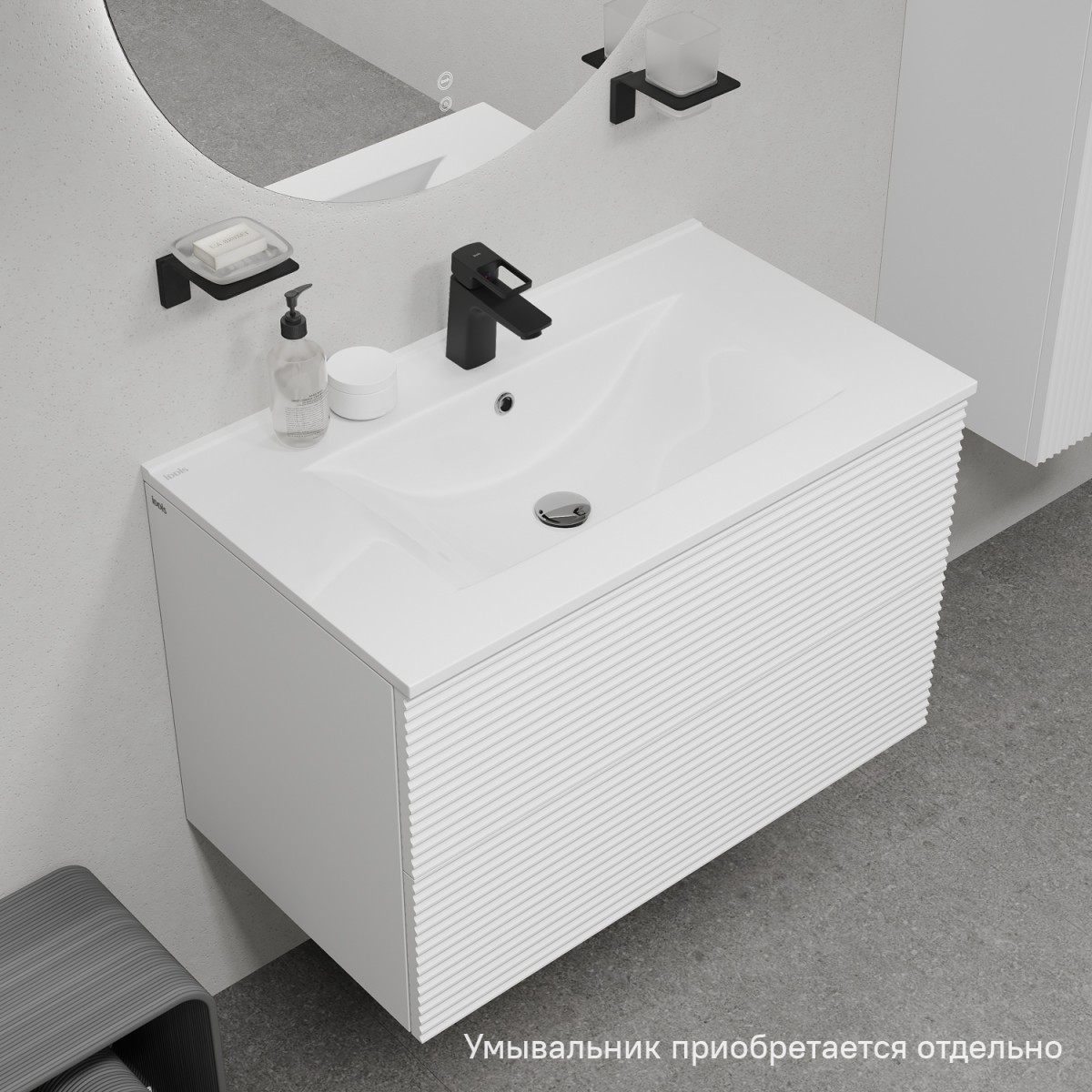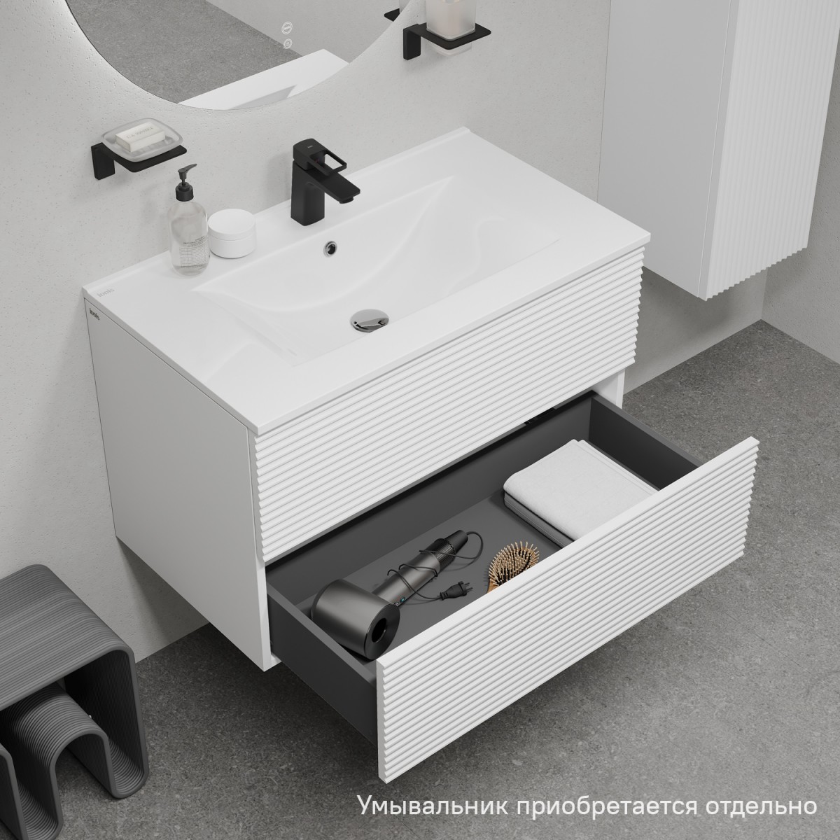 - Вместительная подвесная тумба для ванной комнаты Bild с выдвижными ящиками – красивый дизайн с трендовой горизонтальной фрезеровкой в сочетании с универсальным белым цветом, удобством и практичностью. Умывальник приобретается отдельно; подходит мебельный умывальник IDDIS® арт. 0138000i28.