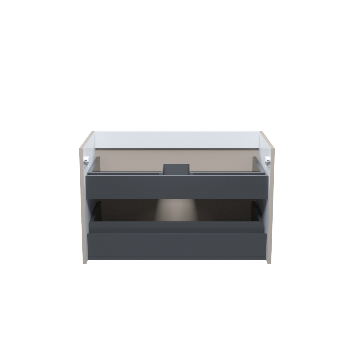 • Два выдвижных ящика закрываются плавно и бесшумно благодаря высококачественным скрытым направляющим с доводчиками немецкого производства.