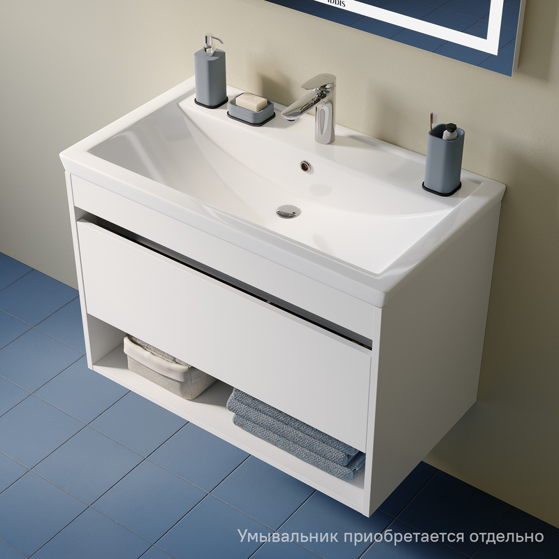 Подвесная тумба для ванной Zodiac X с выдвижным ящиком и открытой полкой – новая версия коллекции-бестселлера Zodiac, которую мы обновили согласно актуальным требованиям дизайна и функционала. Универсальный стиль идеально впишется в любой интерьер, а открытое хранение визуально облегчит пространство ванной, наполнив его воздухом. Умывальник приобретается отдельно (подходит умывальник IDDIS® арт. 4078000i28).