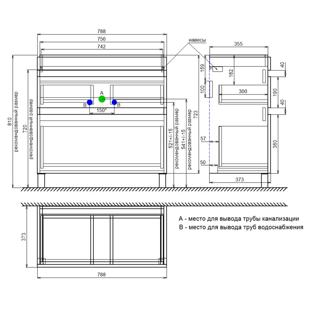 • В комплекте белые пластиковые ножки высотой 100 мм и сифон, за счет чего тумба полностью готова к установке.