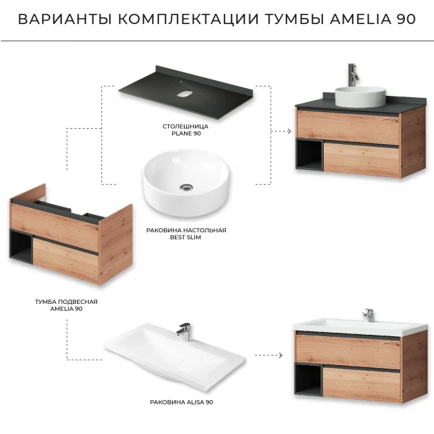 Тумба под раковину Итана Amelia 2.0 4657784351826 90 см (дуб эвок прибрежный) подвесная