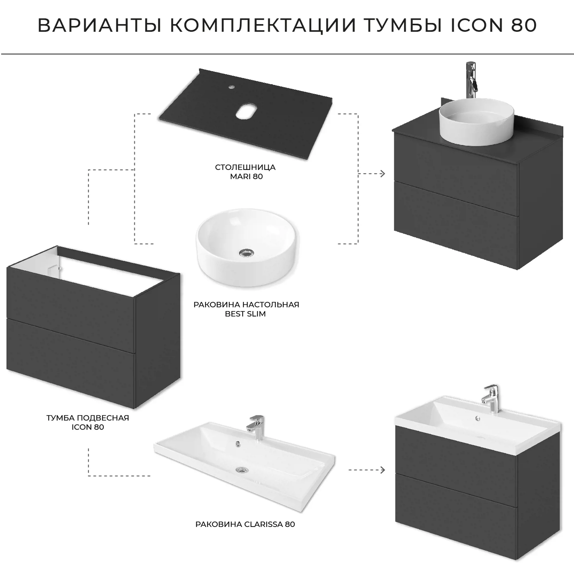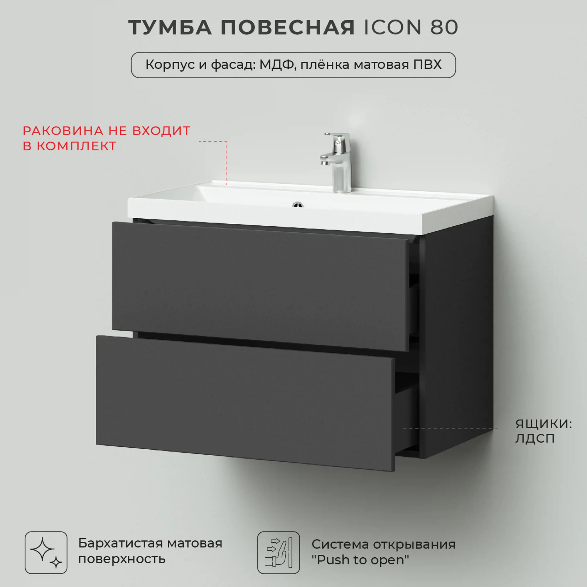 Тумба под раковину Итана Icon 4657784358504 80 см (графит) подвесная
