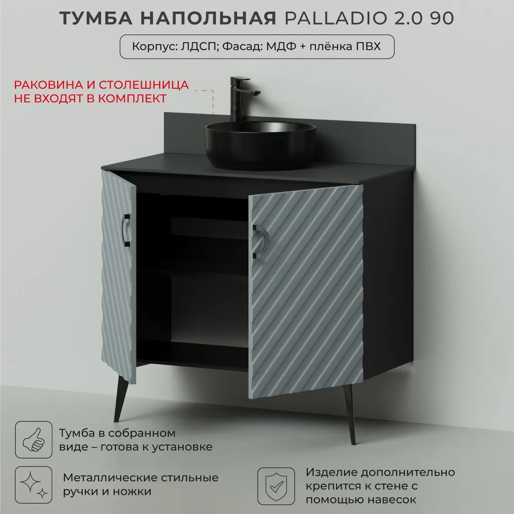 Коллекция Palladio - великолепное звучание современной классики. Изящные пропорции и нестандартный подход к дизайну с сохранением функциональности. Тумба под раковину выполнена из ЛДСП в модных декорах. Технология производства позволила сделать элементы мебели устойчивыми к влаге. Качественная фурнитура с доводчиками обеспечивает легкое открывание и плавное закрывание дверей. Дизайнерские металлические ручки с покрытием - не только декоративный элемент, но и удобное решение - фасады остаются чистыми при постоянном открывании и закрывании. Вырез под сифон универсальный, для любого типа. Благодаря своей конструкции тумба обеспечивает удобный доступ к раковине и позволяет скрыть коммуникации. Тумба под раковину в ванную оснащена удобным шкафчиком для хранения, что позволяет разместить всё необходимое под рукой. Для точного выбора тумбочки под раковину в ванную комнату рекомендуем обратиться к схеме замеров, которая находится на фото в карточке товара, размеры изделия могут отличаться +/-1 см в связи со спецификой производства.