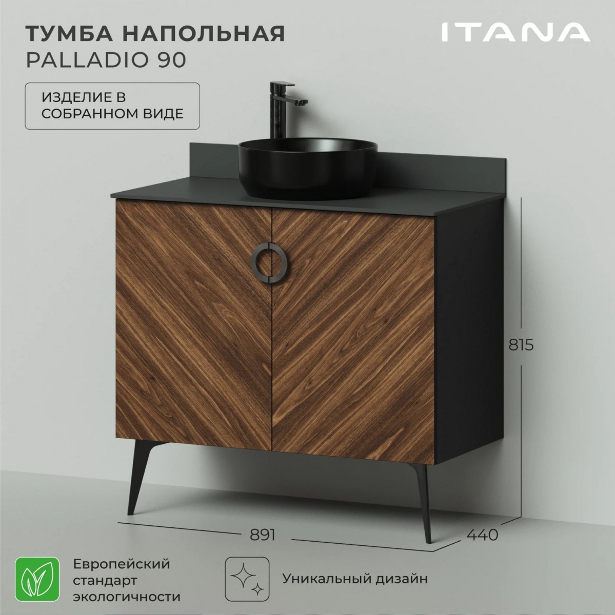 Тумба под раковину Итана Palladio 4657810333703 90 см (дуб бурбон) напольная