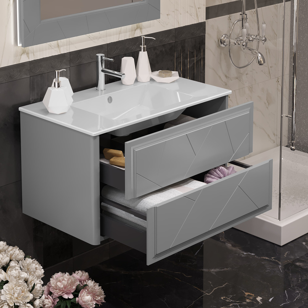 Тумба под раковину Opadiris Луиджи 00-00005940 90 см (серый матовый) подвесная
