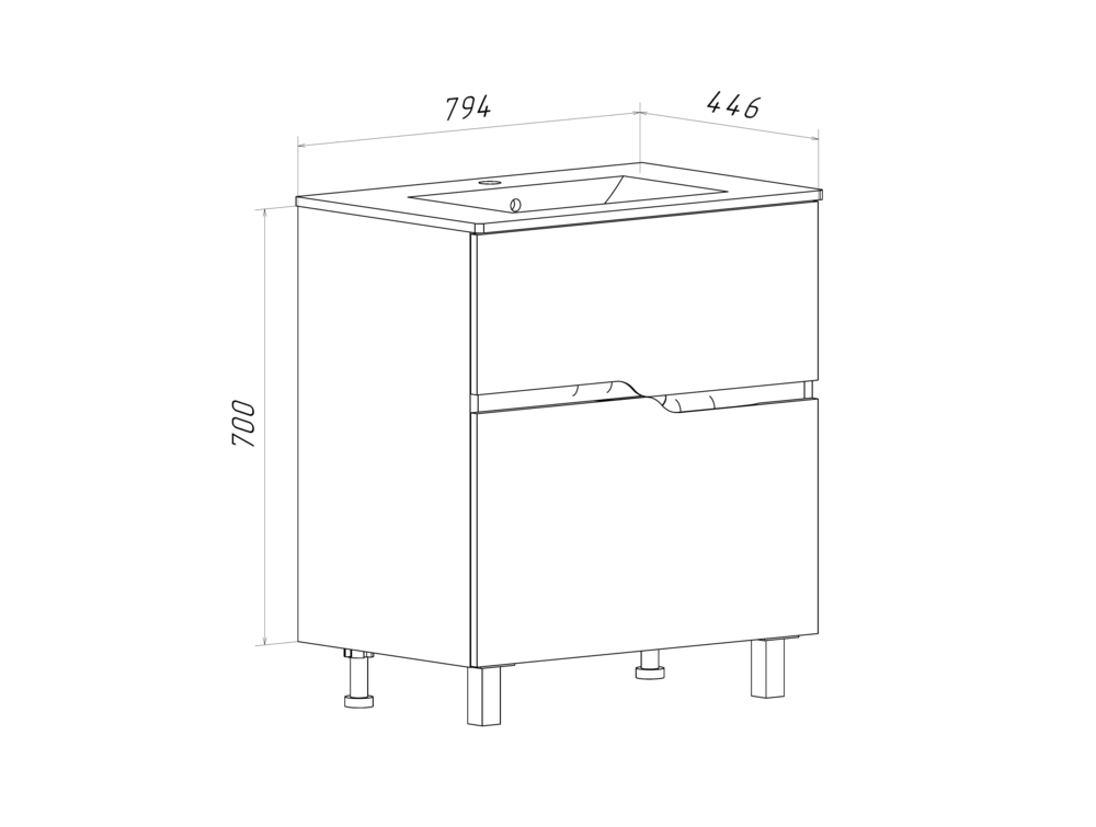 Габариты корпуса тумбы (ШхВхГ): 794х700х446 мм.