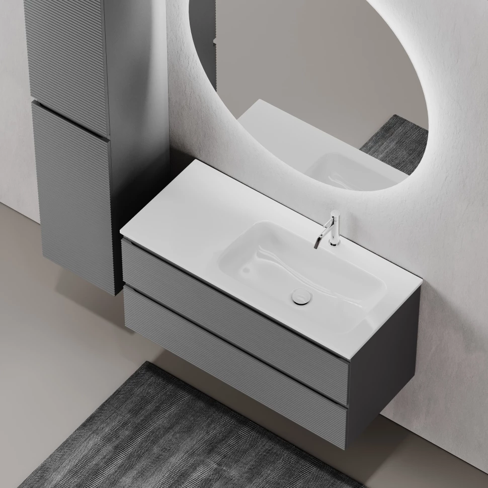 Тумба под раковину Sancos Folk FL100RGS 99 см (тёмно-серый матовый) подвесная R