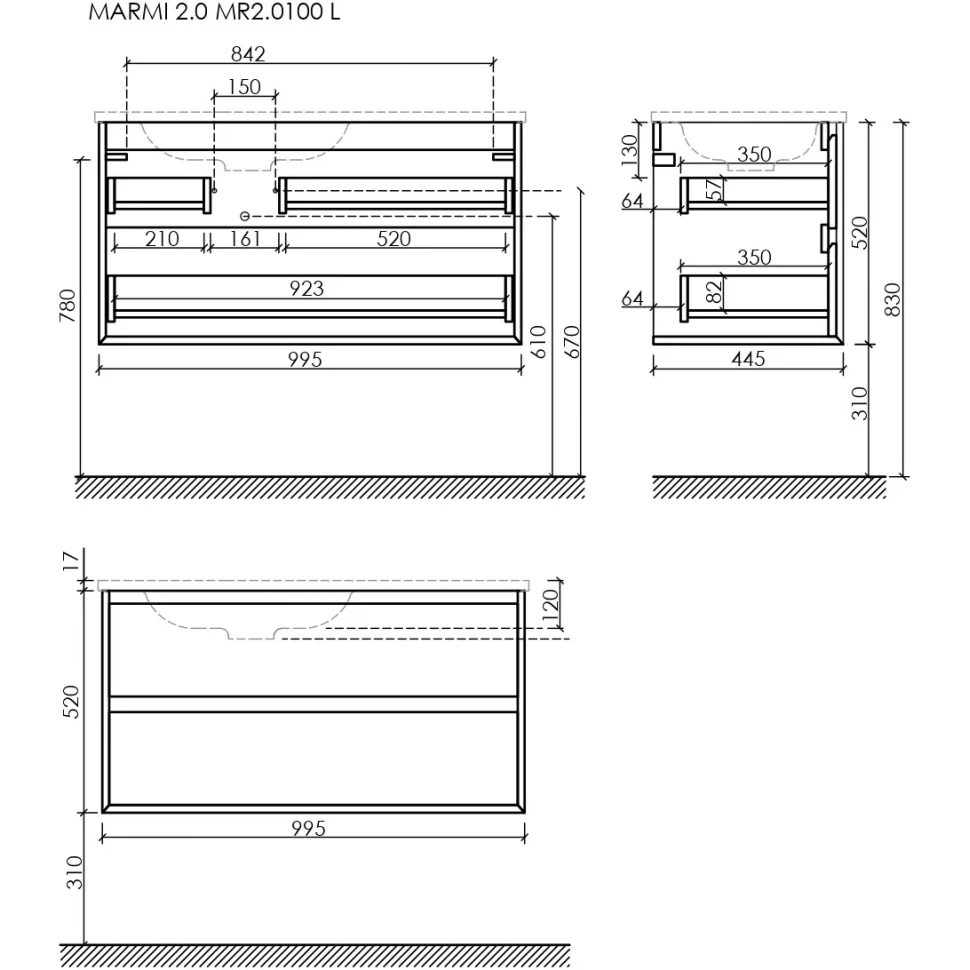 Тумба под раковину Sancos Marmi MR2.0100LEG 99 см (дуб галифакс) подвесная L