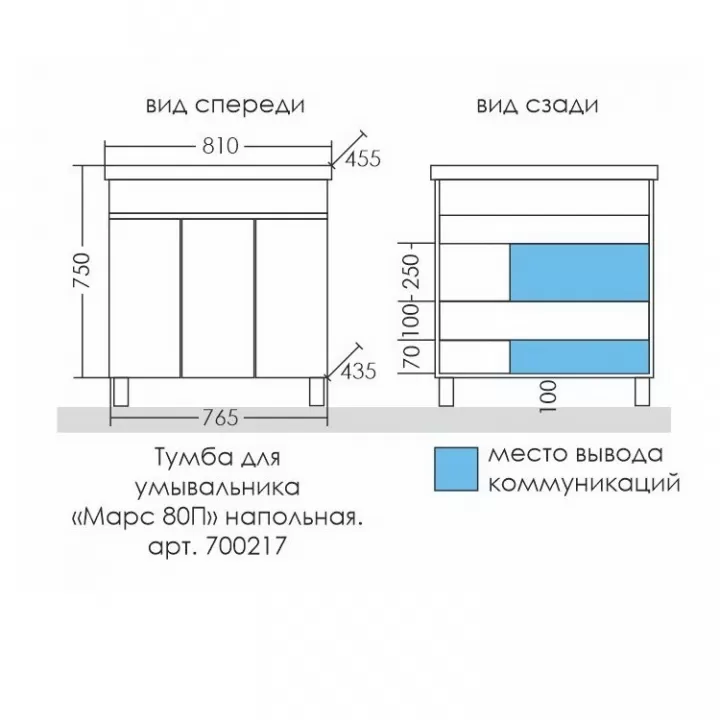| Комплектация | тумба. Раковина заказывается отдельно |