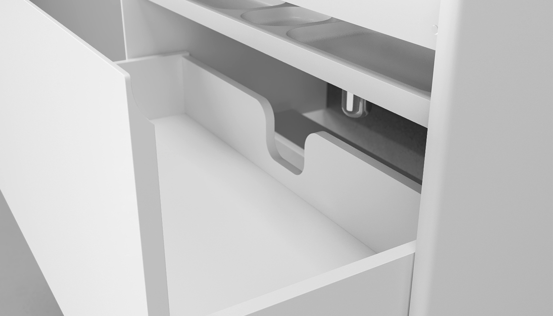 Материалы тумбы: МДФ, полимерное покрытие ПВХ, HPL поверхность, европейская фурнитура