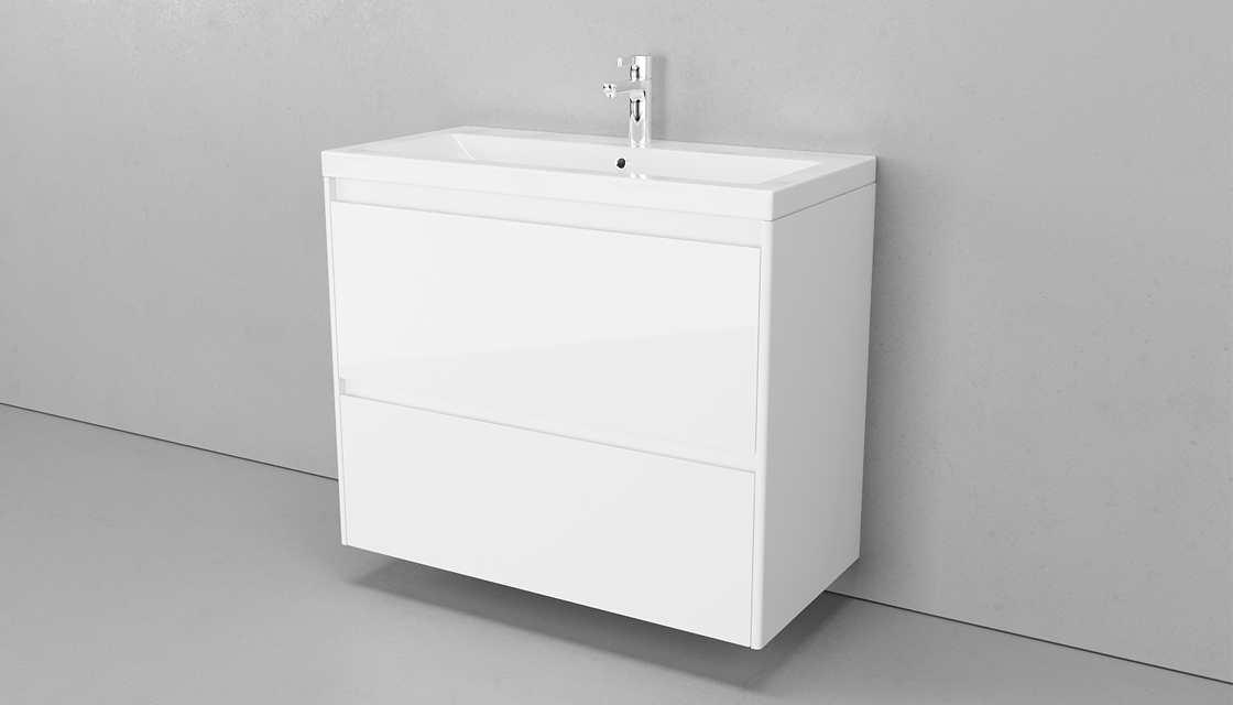 Тумба под раковину Velvex Klaufs 90 см (белый) 2 ящика, подвесная