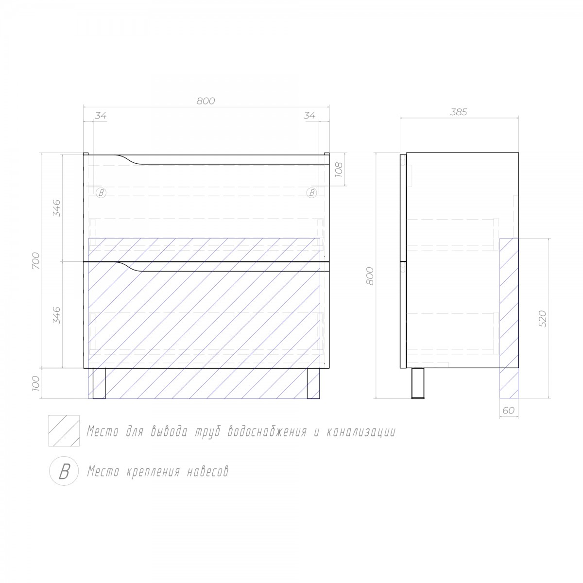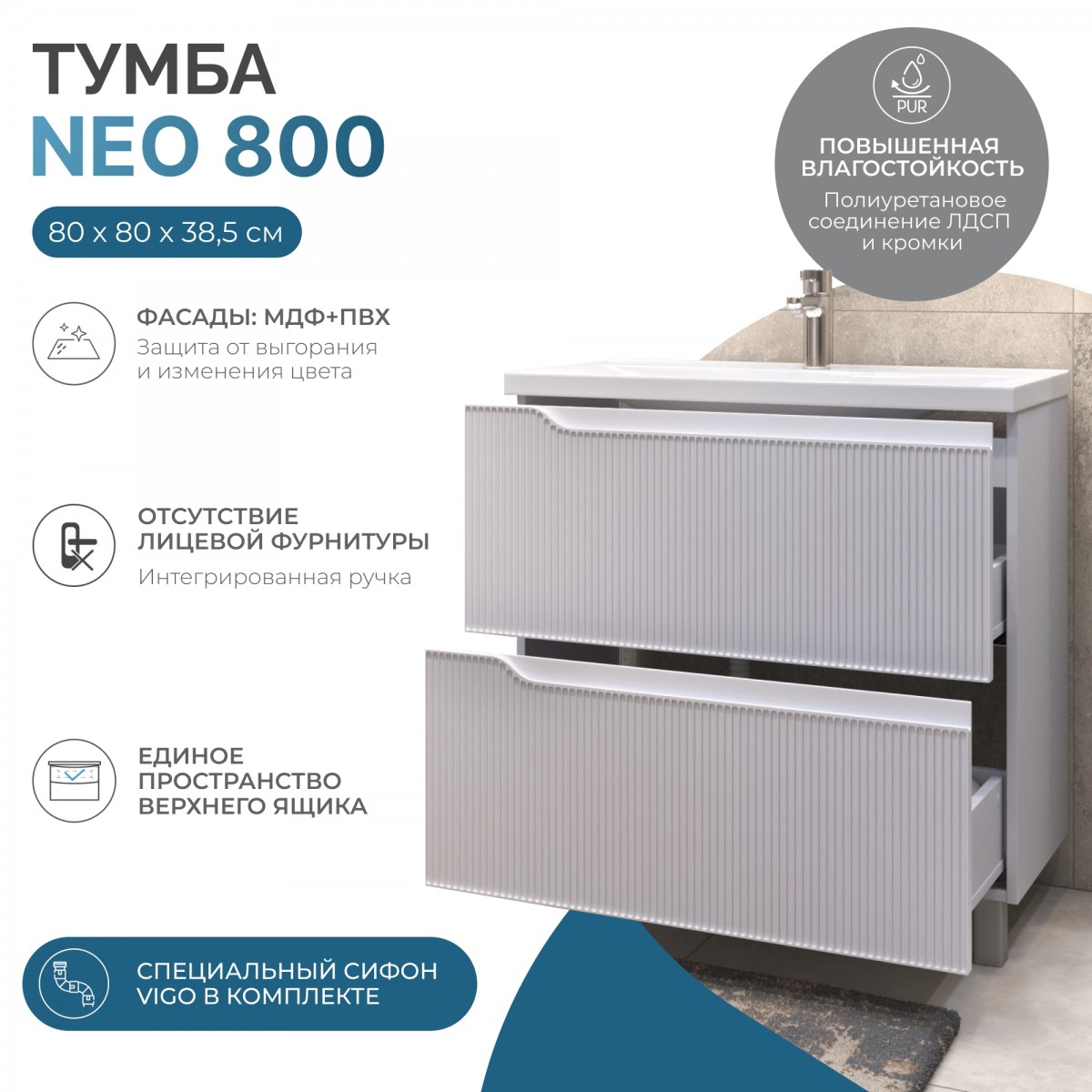 Тумба под раковину Vigo Neo tn.NEO.9696.80.2Y 80 см (белый) напольная