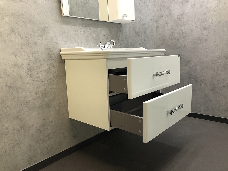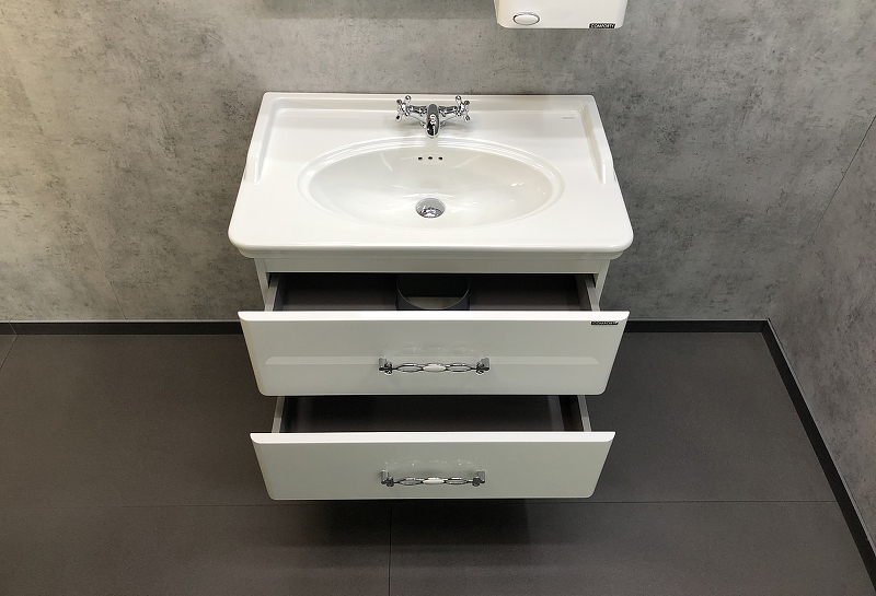 - Подвесная тумба с двумя выкатными ящиками оснащенными системой плавного закрывания.