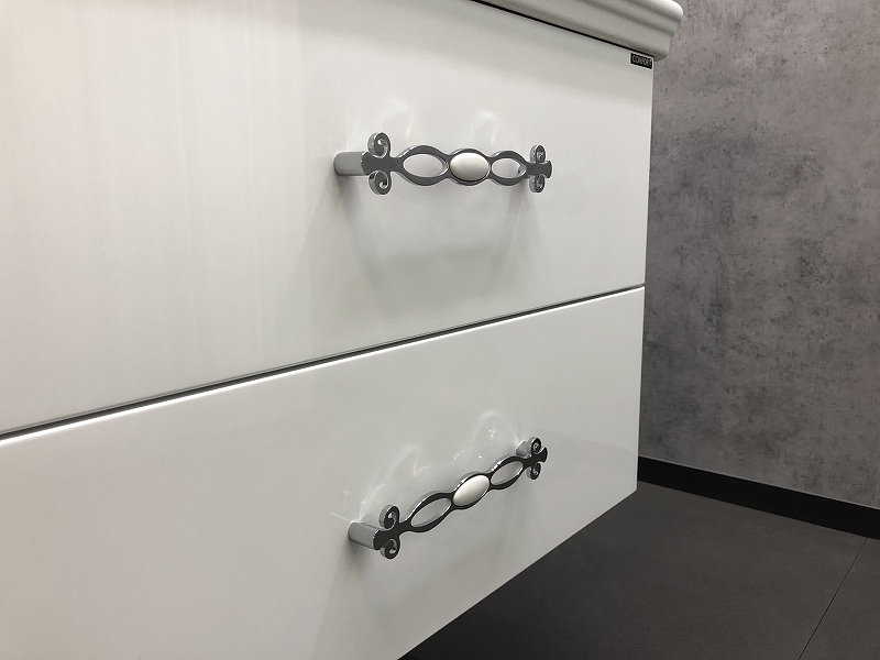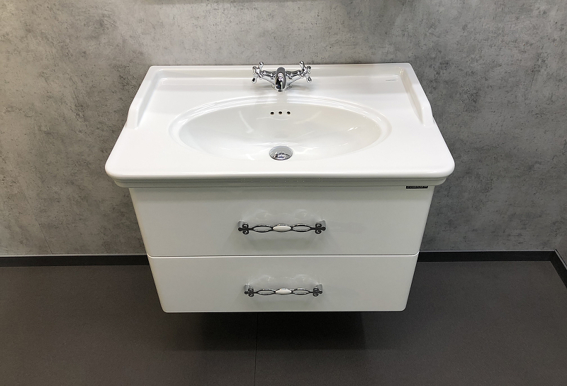 - Тумба укомплектована раковиной столешницей с овальной чашей.