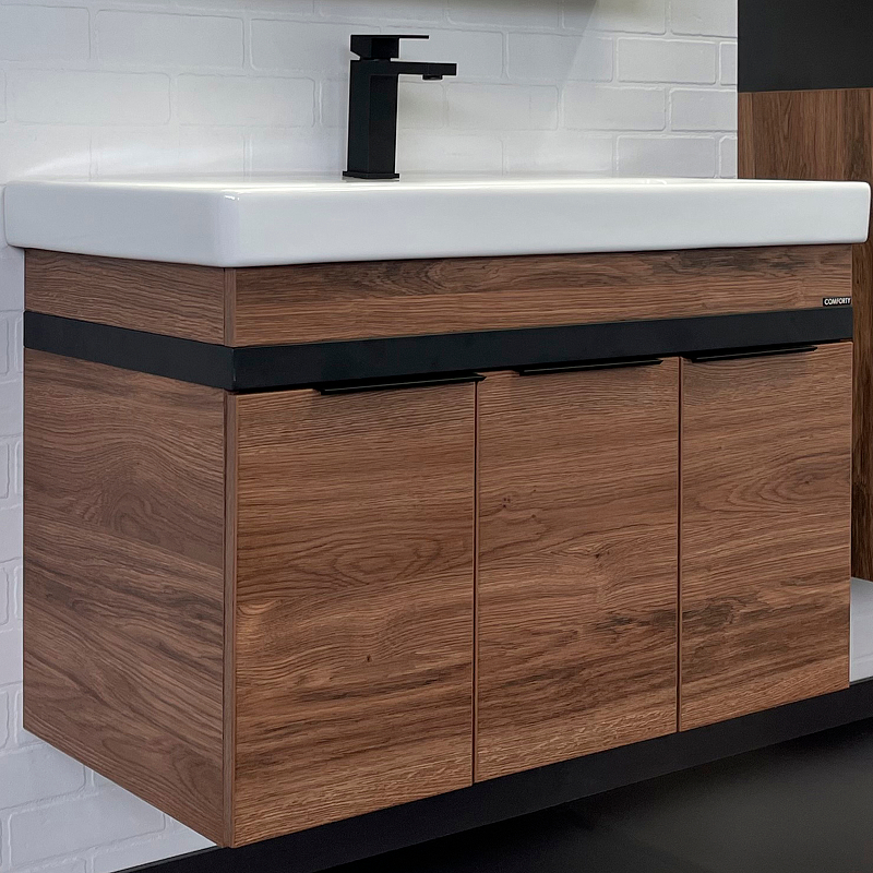 Тумба с раковиной Comforty Соло 00-00010979 90 см (дуб тёмно-коричневый) подвесная