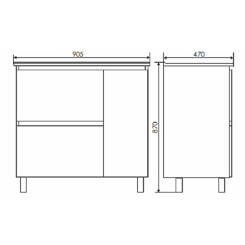 - Напольная тумба-умывальник с двумя выдвижными ящиками и одной створкой.