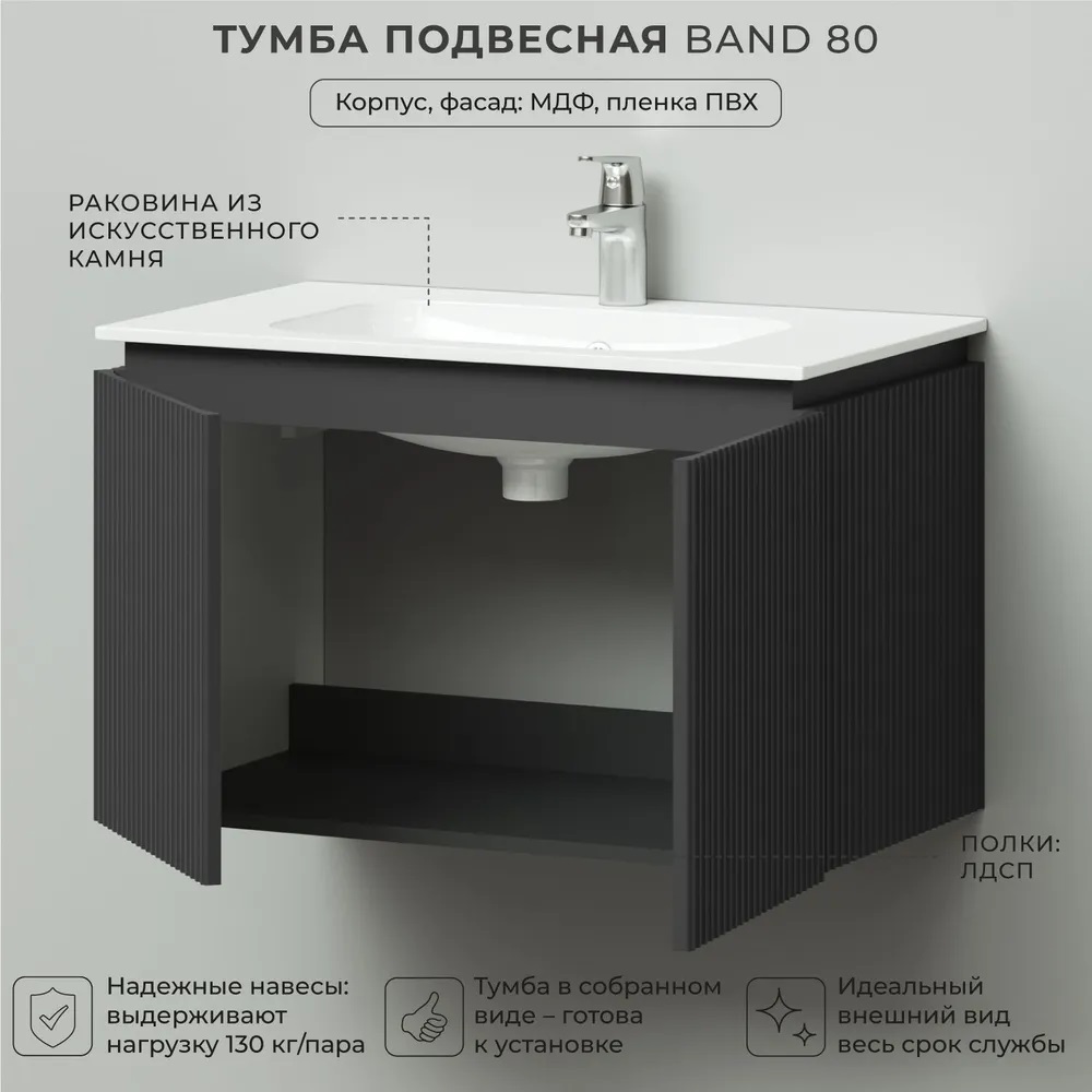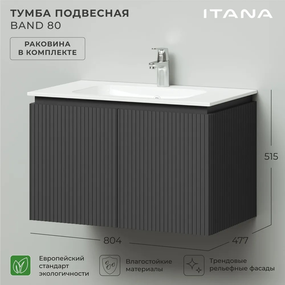 Тумба с раковиной Итана BAND 4657826222640 80 см (графит) подвесная